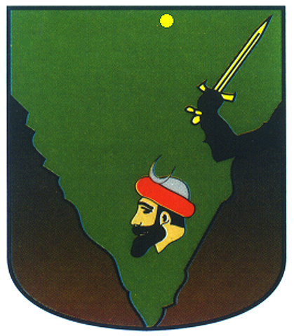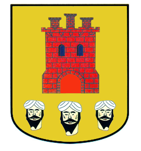 Armas: En campo de oro, un castillo de gules, y en punta, tres cabezas de moros.