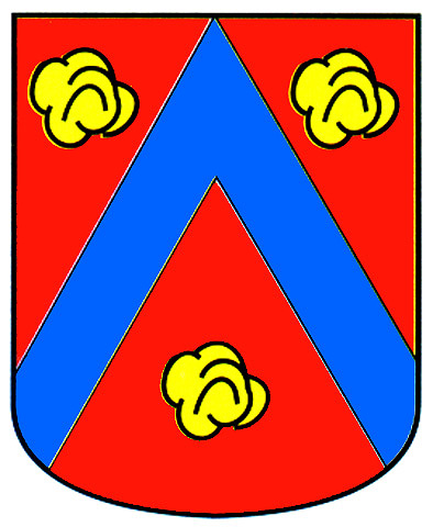 Armas: En campo de gules un chevrón azur acompañado de tres rosas de gules.