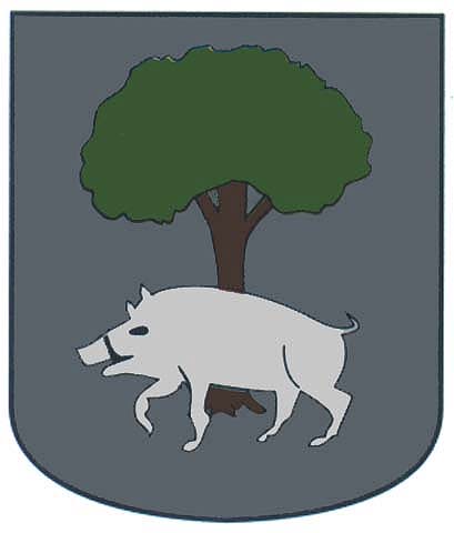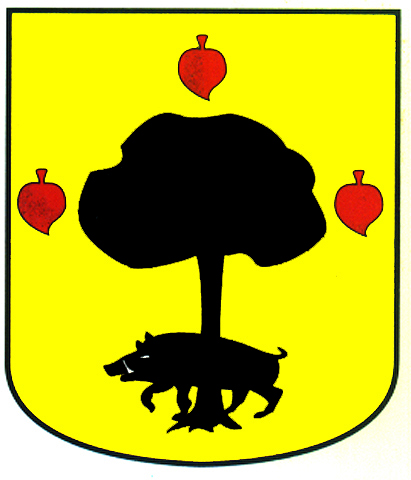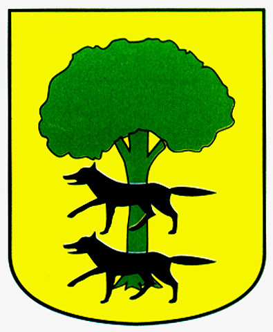 Armas: Un árbol de sinople con dos lobos de sable atravesados a su tronco.