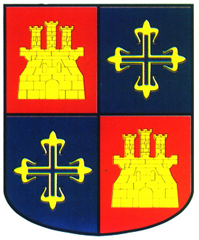 Armas: Escudo cuartelado: 1º y 4º; de gules y un castillo de oro. 2º y 3º, de azur y cruz hueca de oro, flordelisada, como la de Calatrava.