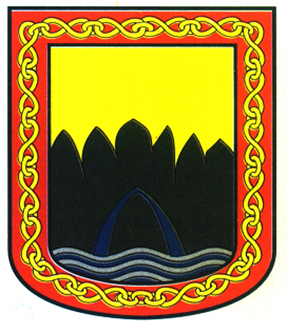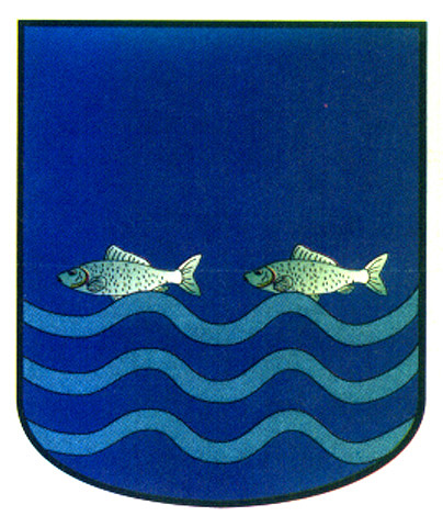 Armas: En azur sobre ondas de azur y plata dos peces de plata.