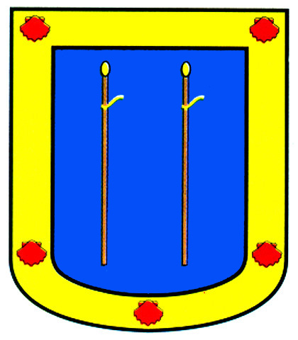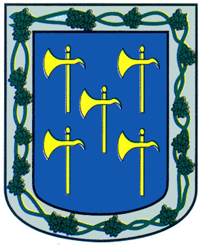 Armas: En azur cinco alabardas de oro, puestas en sotuer. Bordura de plata, con una parra, frutada de sinople.