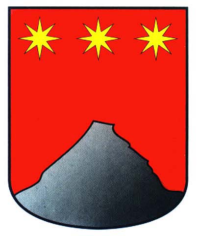 Armas: En campo de gules, un monte de plata y el jefe cargado de tres estrellas de oro.