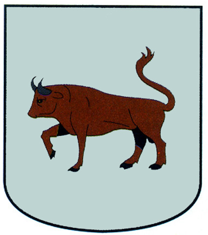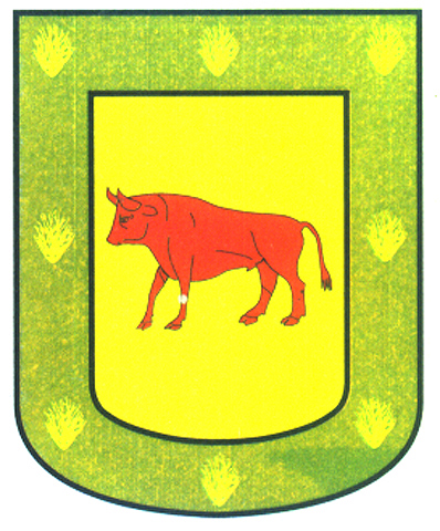 Armas: Escudo de oro y un toro de gules. Bordura de sinople y ocho brezos de oro.