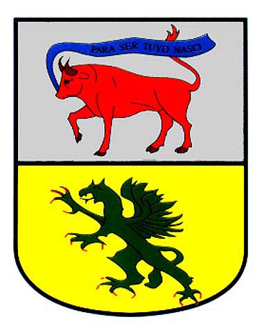 Armas: Escudo cortado; 1º, de plata, con un buey de gules, de cuya boca sale una cinta verde con la incripción: «Para ser tuyo nasci». 2º en oro, un dragón de sinople armado y linguado de gules.