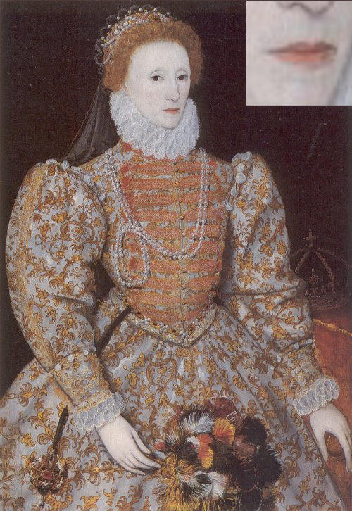 El ideal de belleza fue implantado por la Reina Isabel I, que hizo famoso el carmín rojo en contraste con su cara pálida. Incluso en su lecho de muerte llevó los labios generosamente pintados.