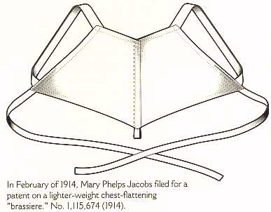 Las mujeres distinguidas de la época portaban corsés de ballenas y cordaje, que no eran cómodos y dificultaban los movimientos. Aun así, a Mary Jacobs no le interesaba la comodidad, sino la apariencia, y en el año 1913 obtuvo un traje de noche muy caro para una fiesta de sociedad. Dicho vestido mostraba claramente la silueta de su corsé, así que mary Jacobs, con la ayuda de su doncella francesa, diseñó un sucinto sujetador sin espalda, usando solamente dos pañuelos blancos, una cinta y un cordón.