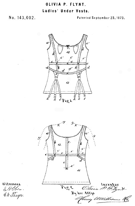 En 1873, Olivia P. Flynt creó una prenda que sostenía ambos senos con una bolsa de tela apoyada con tirantes muy gruesos, los cuales se podían hacer más delgados y adornar con encajes y un acolchado para resaltar el busto.