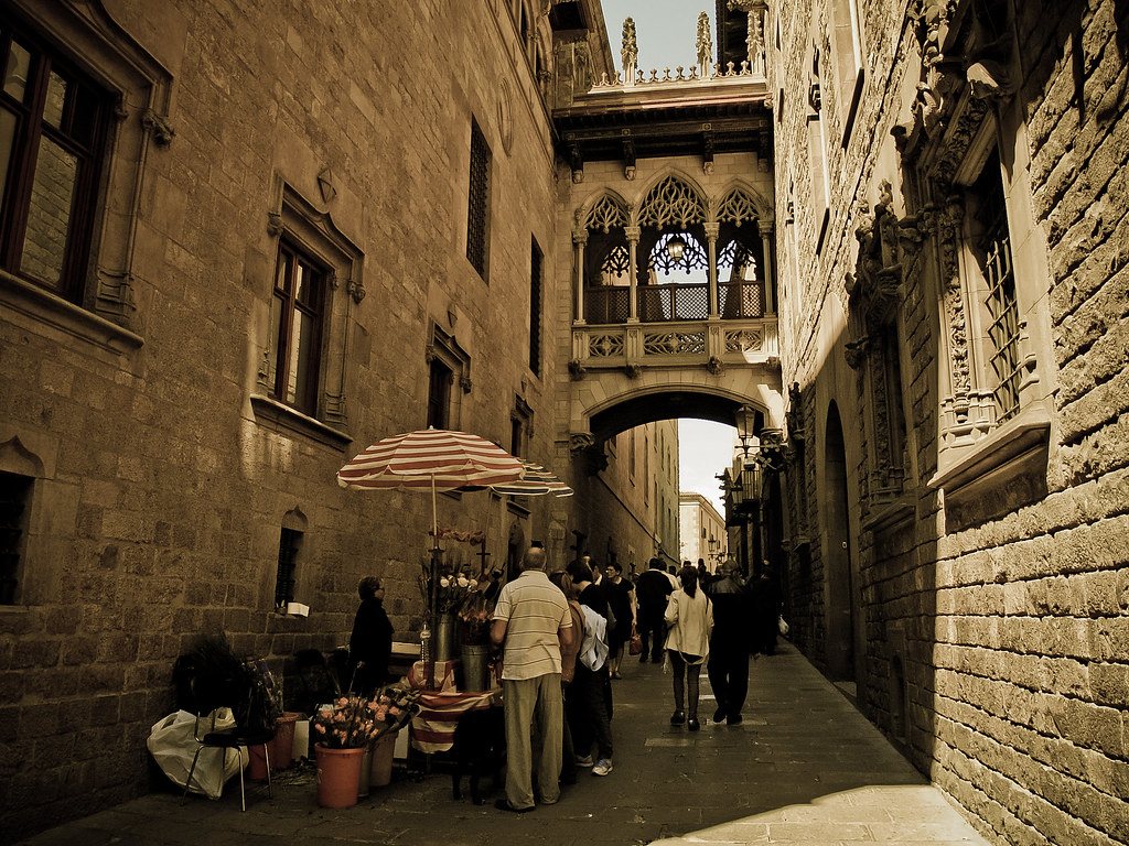 Esta es una de esas calles icónicas del barrio gótico que no nos podemos dejar atrás. Y es que es otra visita obligada del casco histórico de la Ciudad Condal.