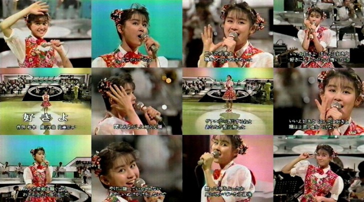 Después de este corto repaso a la carrera de Eriko y unas pocas noticias sobre ella, os dejo con un vídeo de la actuación de Sukiyo y la letra de la canción. Esta interpretación fue grabada el 10 de junio de 1989 y fue emitida el 21 de junio de ese mismo año. Tiene una calidad muy buena.