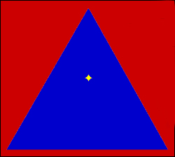 El punto amarillo está tan lejos de la punta del triángulo como del centro de la base. ¿A que parece encontrarse más arriba del punto medio?