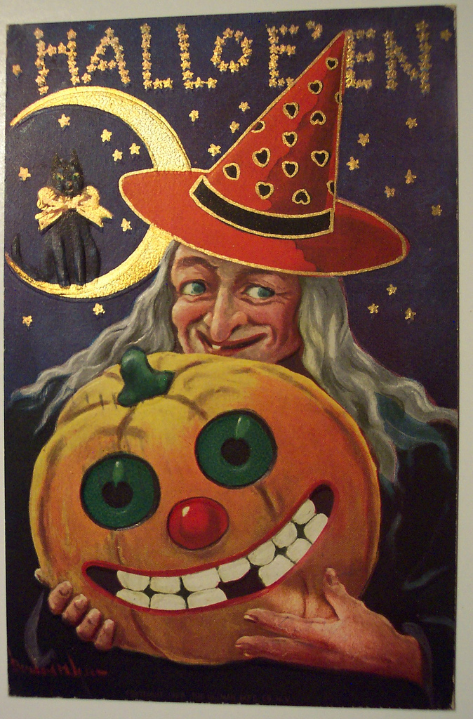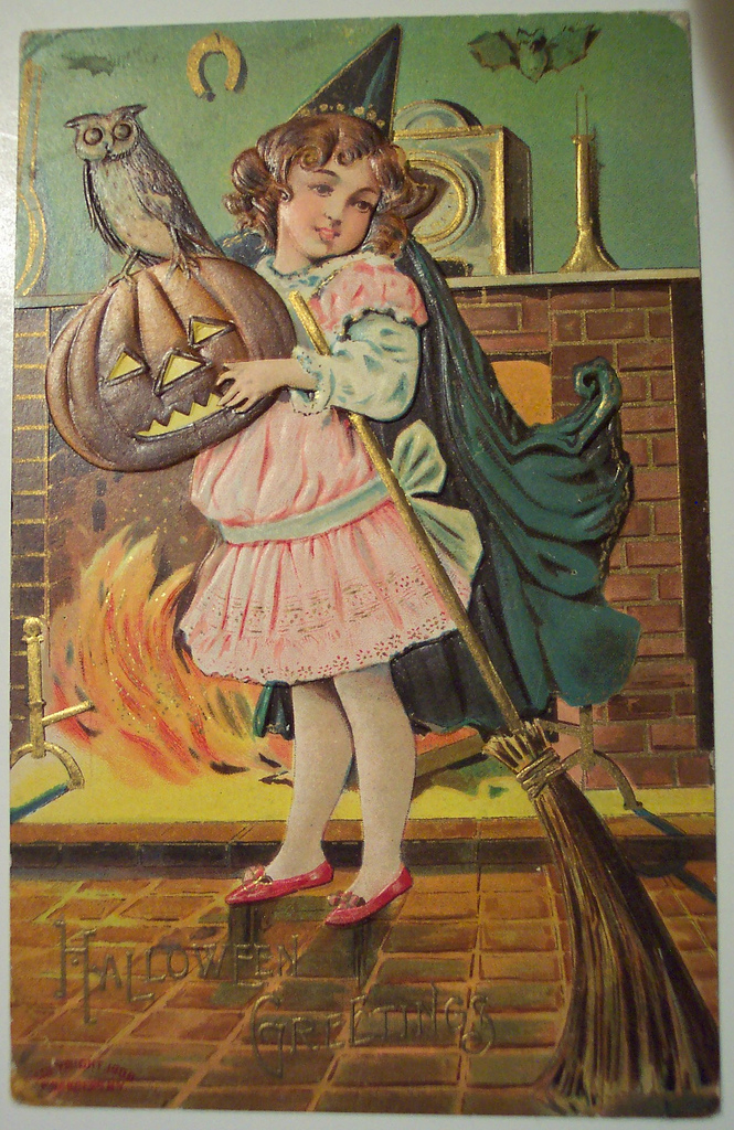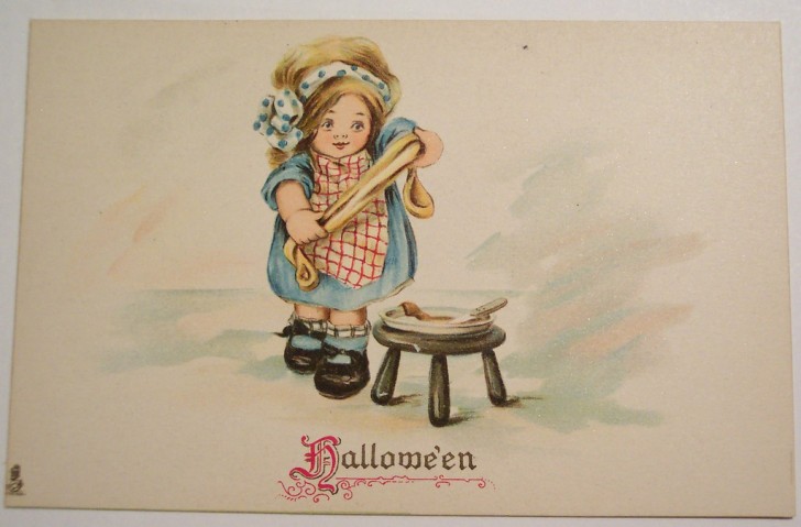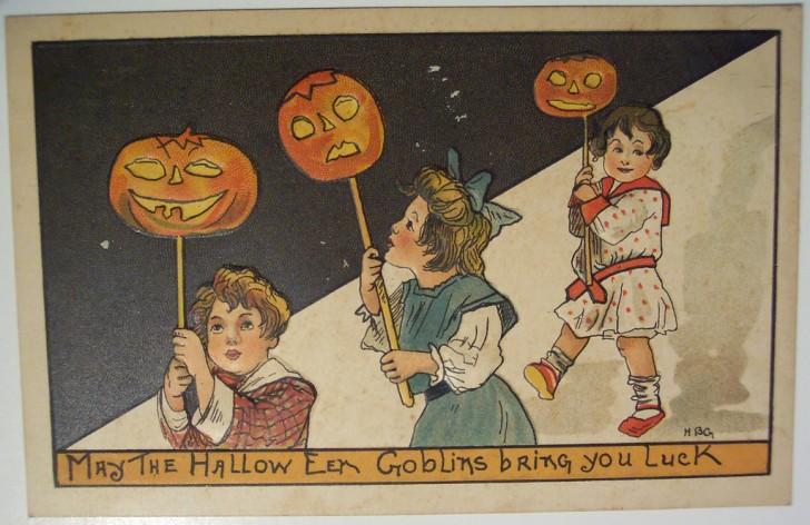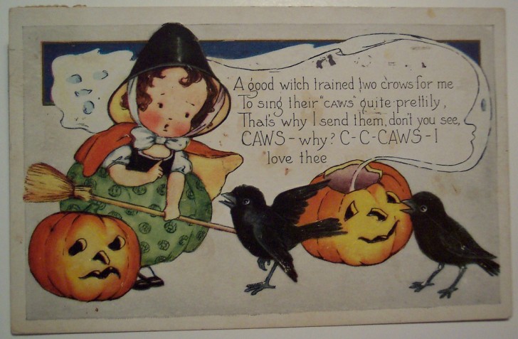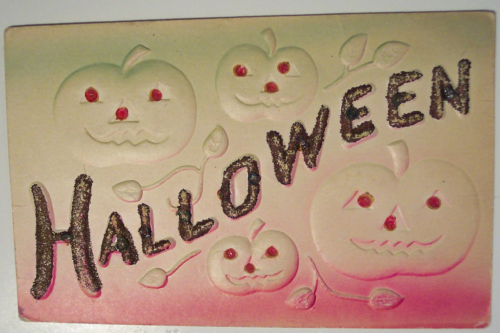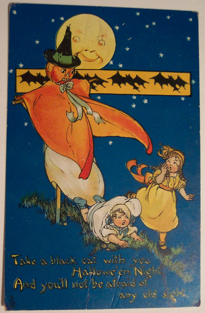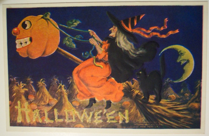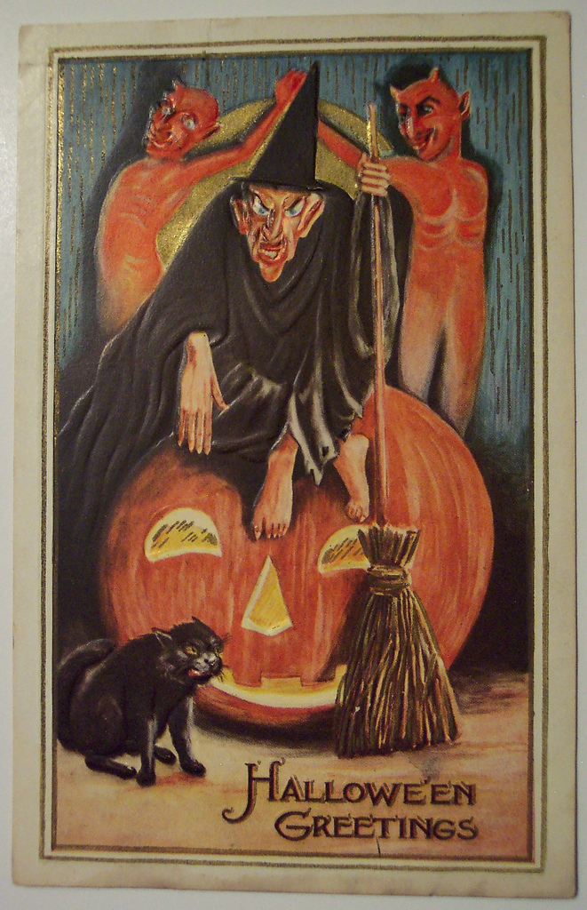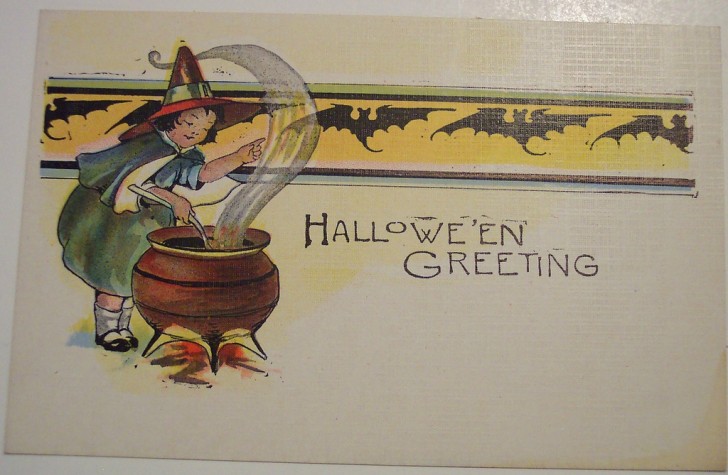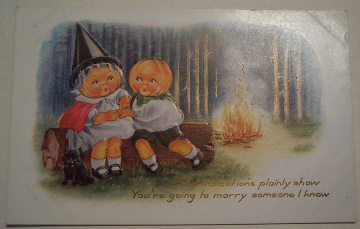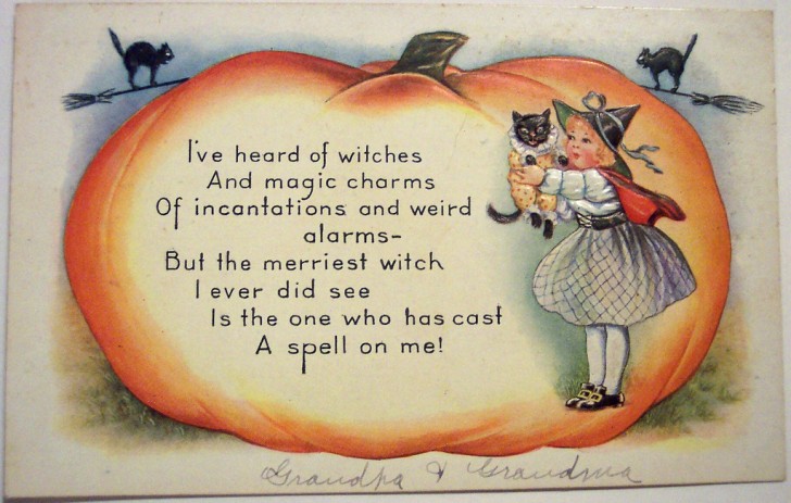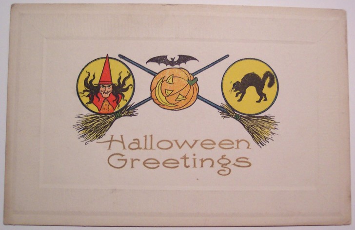 Presentamos varias postales de Halloween con un ambiente antiguo y vintage muy evocador, donde las calabazas, tiernos infantes, gatos, brujas y demás elementos tenebrosos se dan cita.