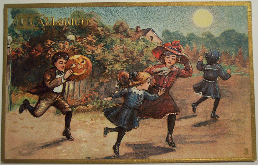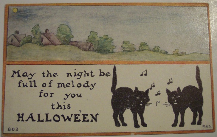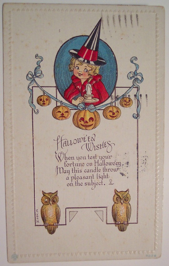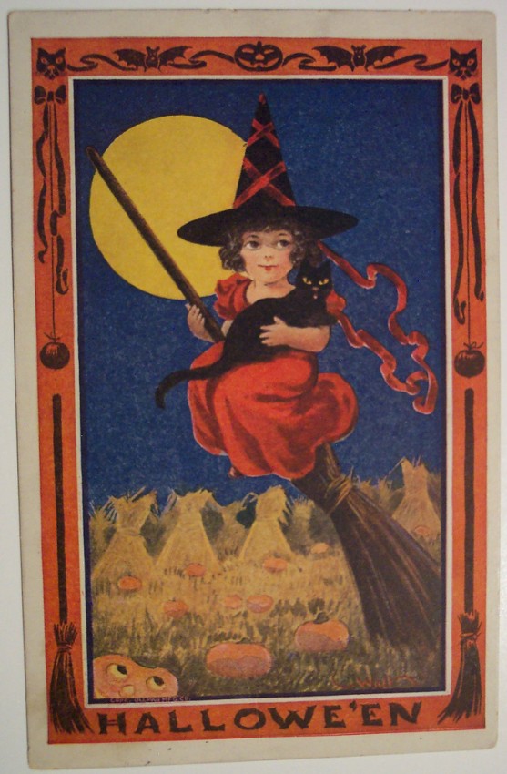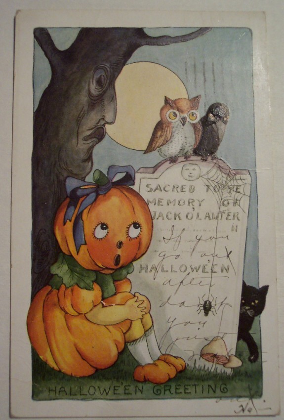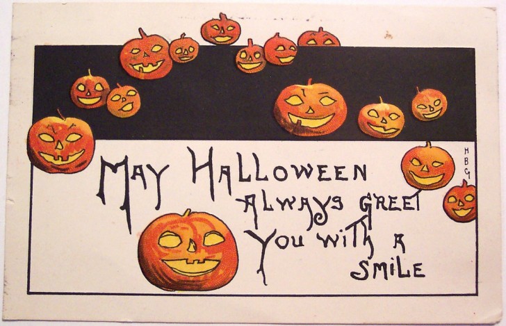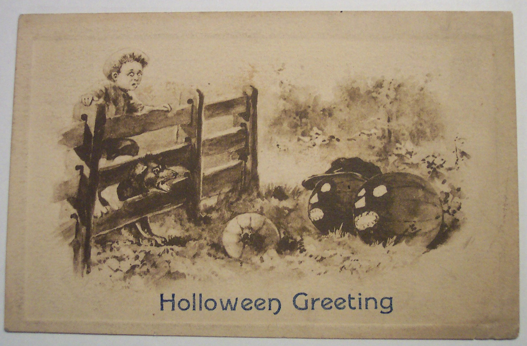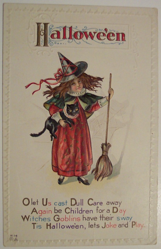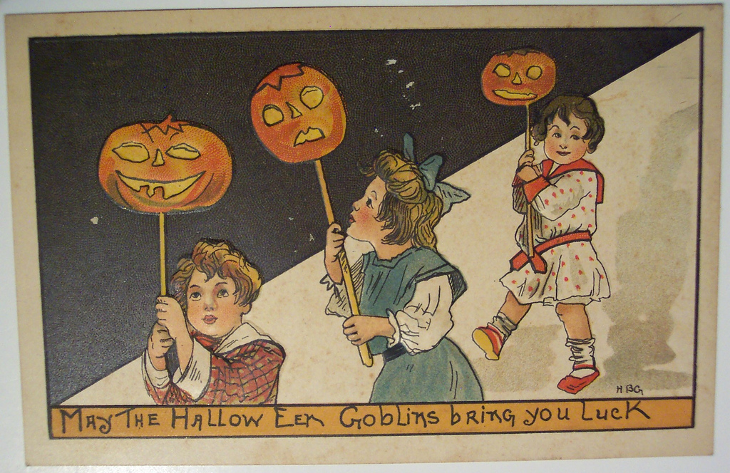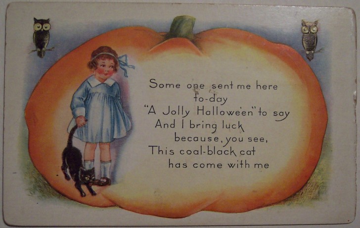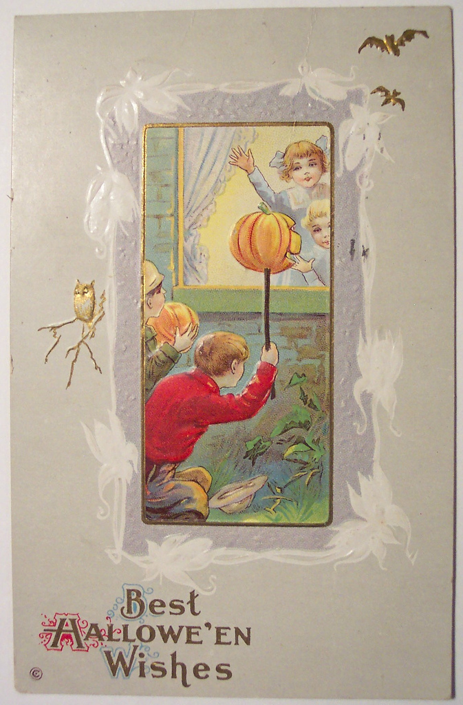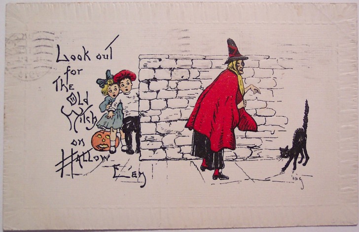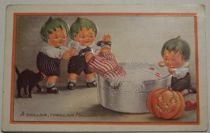 Presentamos varias postales de Halloween con un ambiente antiguo y vintage muy evocador, donde las calabazas, tiernos infantes, gatos, brujas y demás elementos tenebrosos se dan cita.