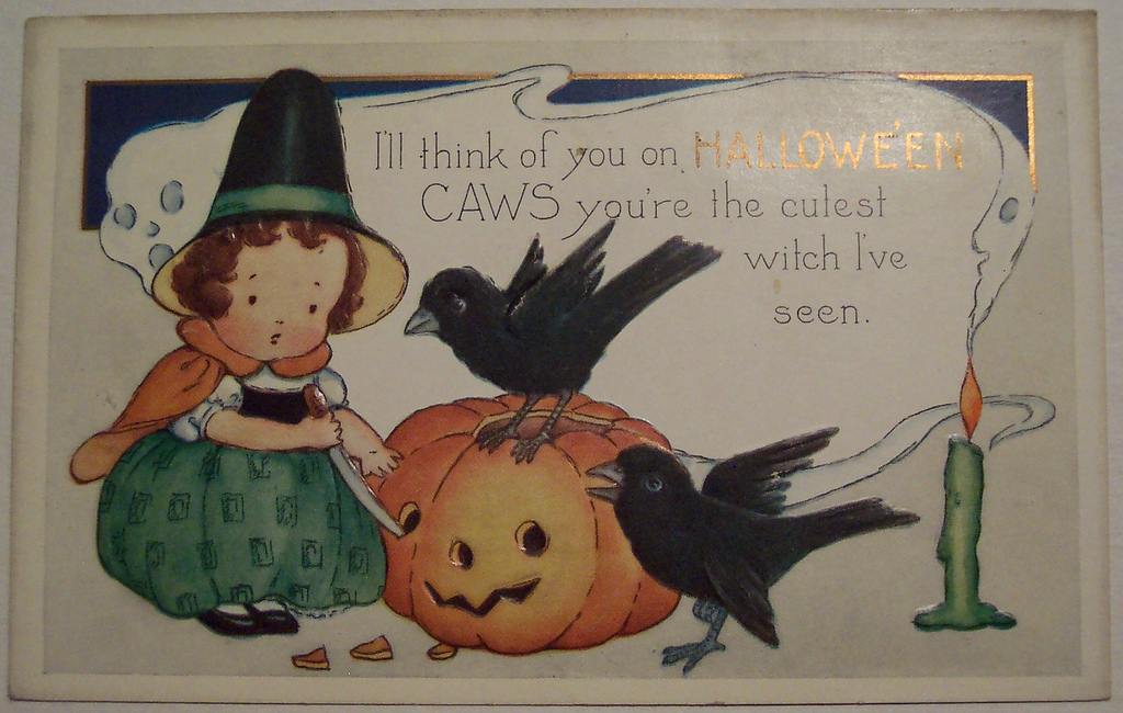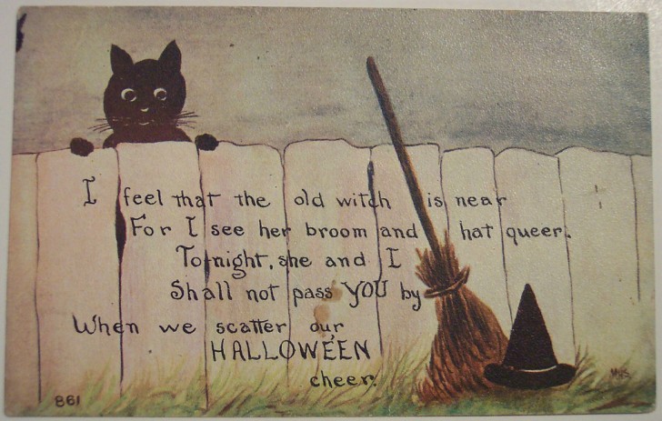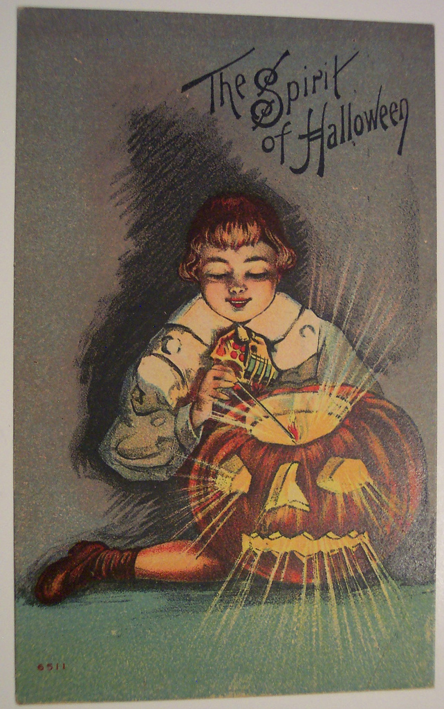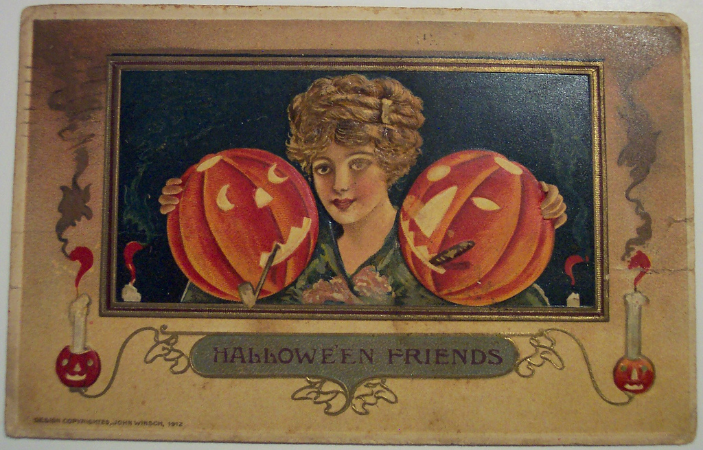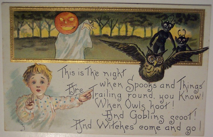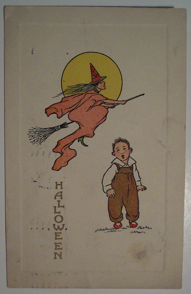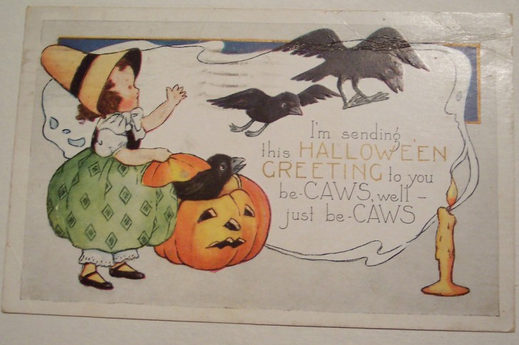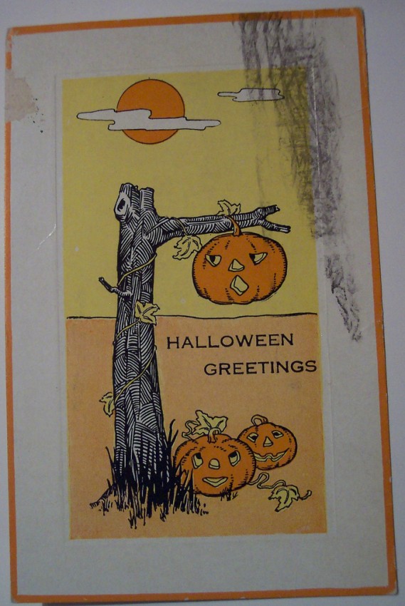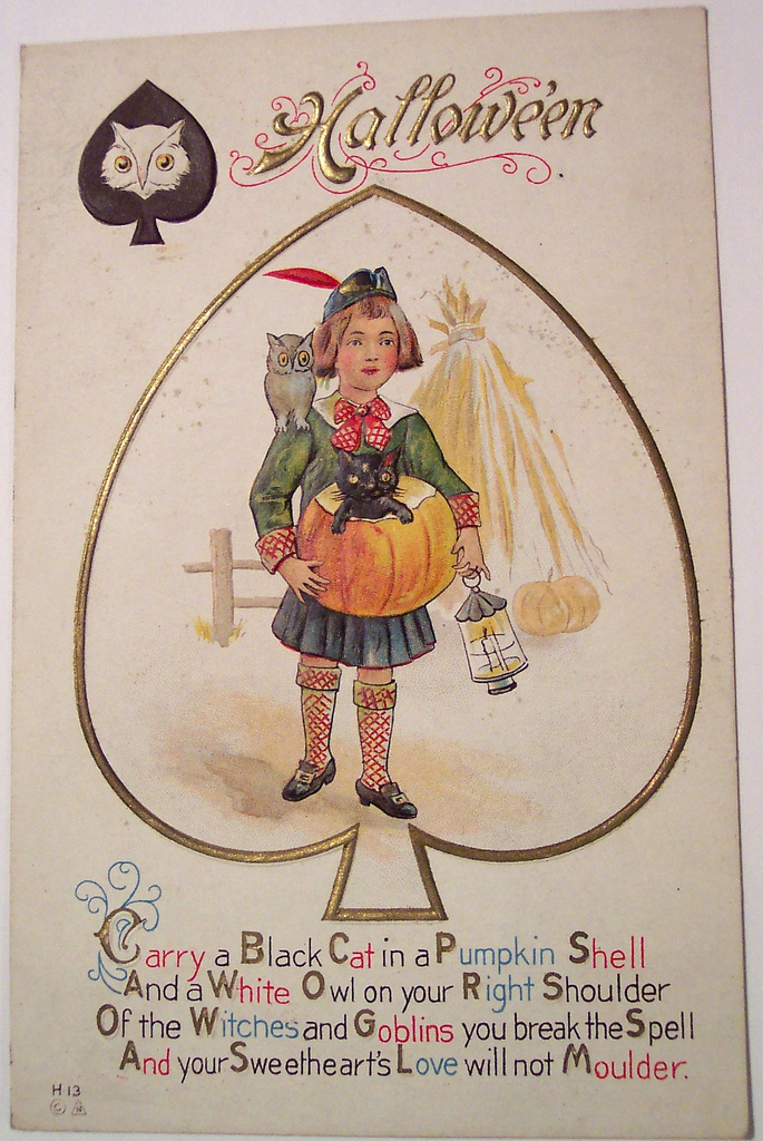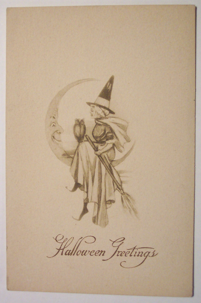 Presentamos varias postales de Halloween con un ambiente antiguo y vintage muy evocador, donde las calabazas, tiernos infantes, gatos, brujas y demás elementos tenebrosos se dan cita.