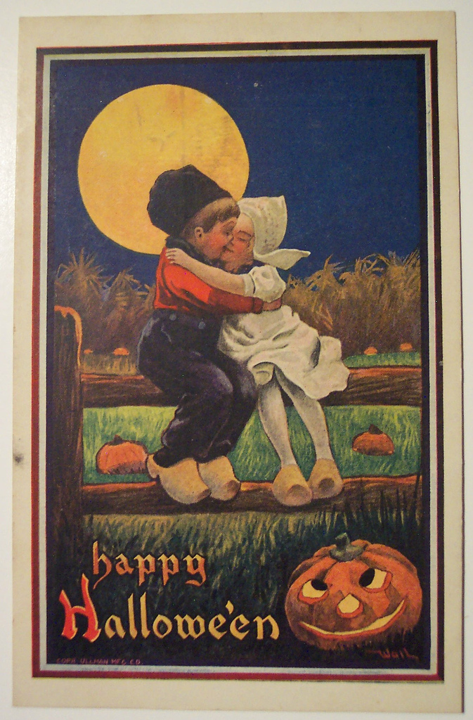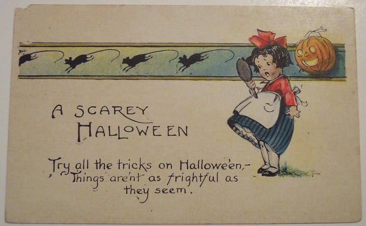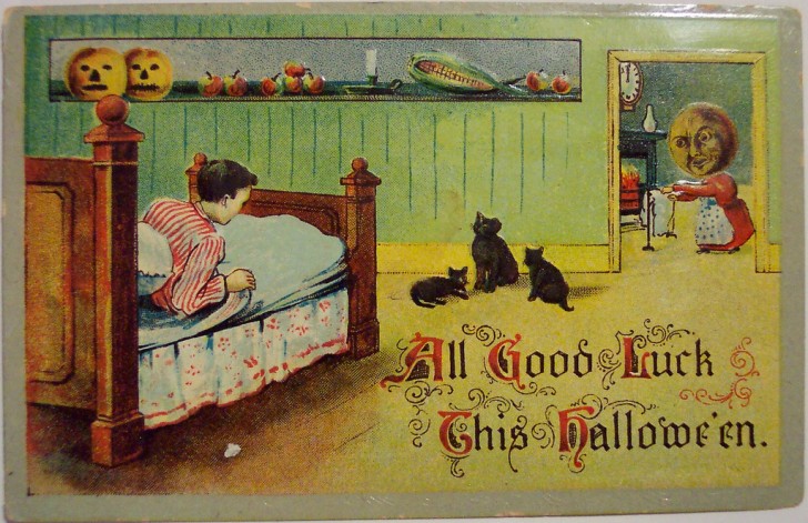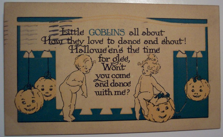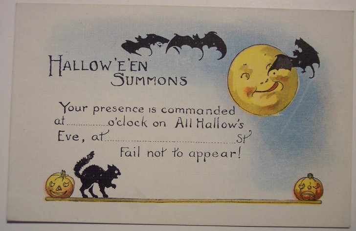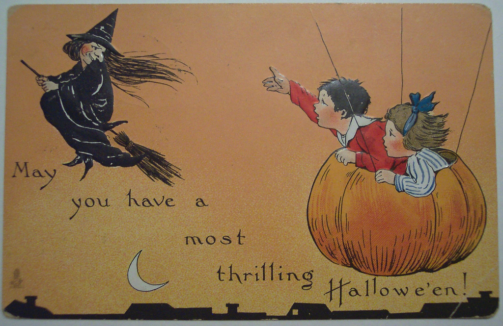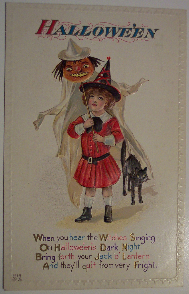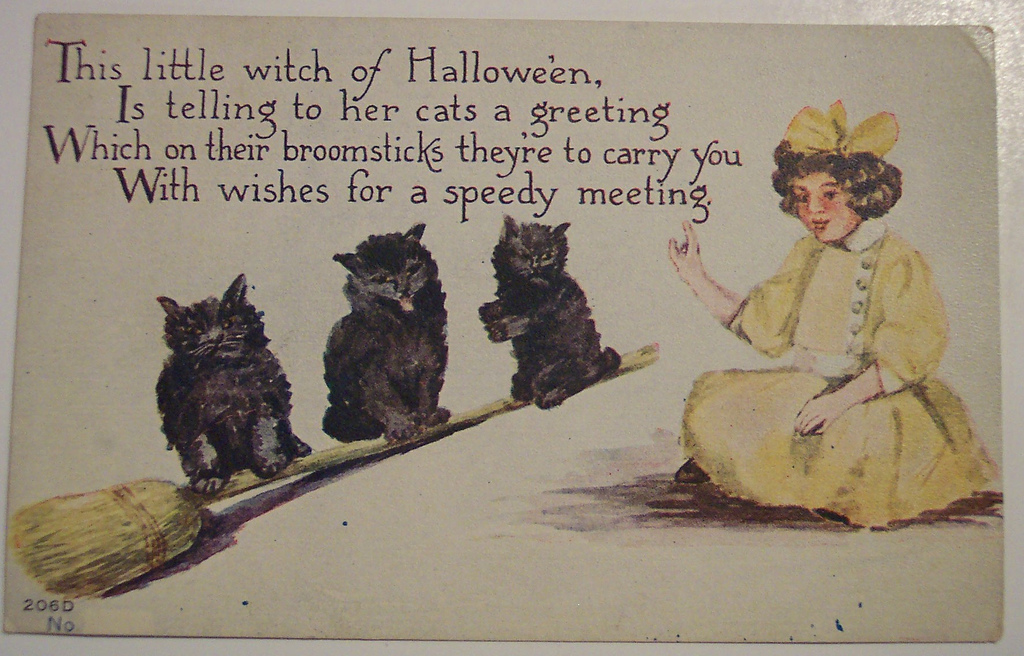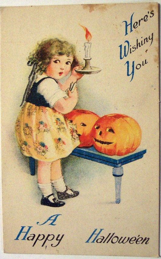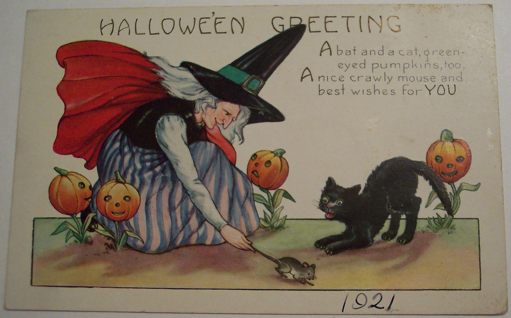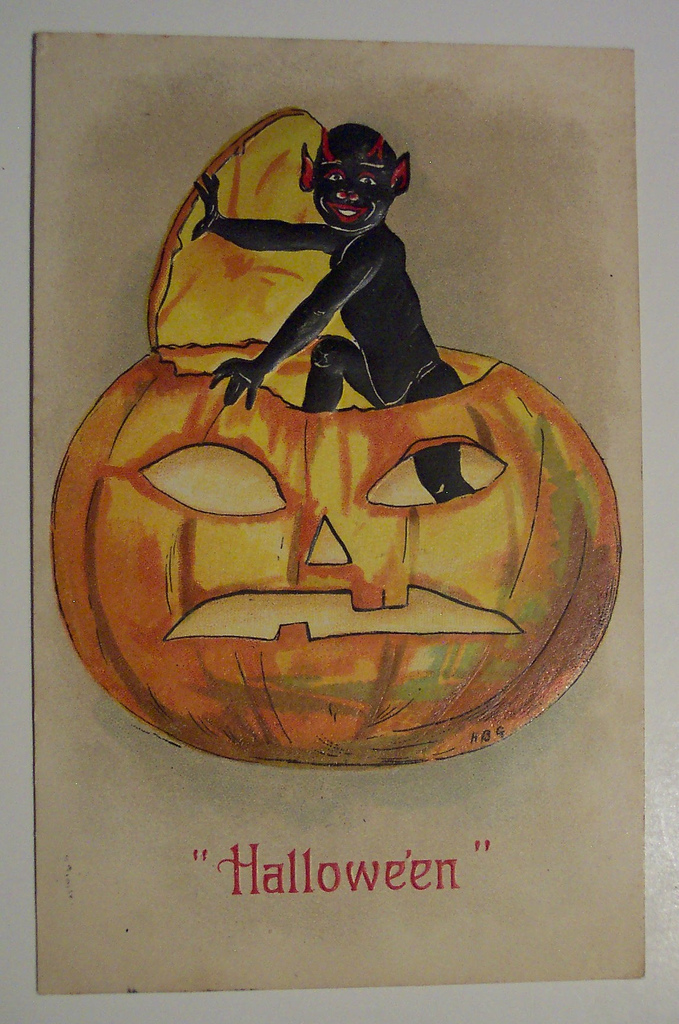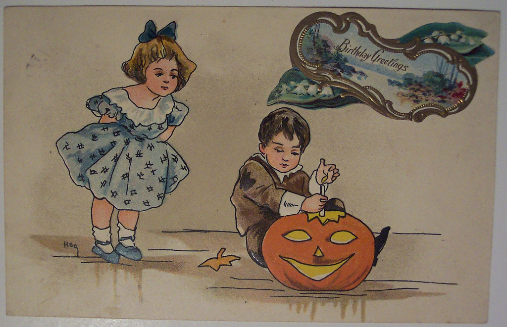 Presentamos varias postales de Halloween con un ambiente antiguo y vintage muy evocador, donde las calabazas, tiernos infantes, gatos, brujas y demás elementos tenebrosos se dan cita.