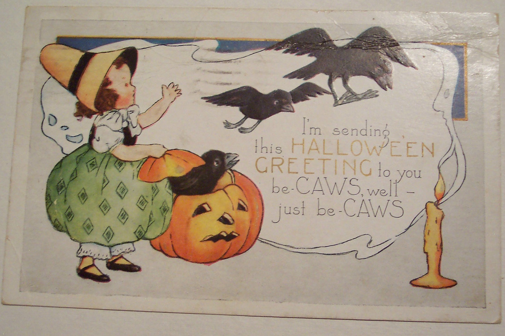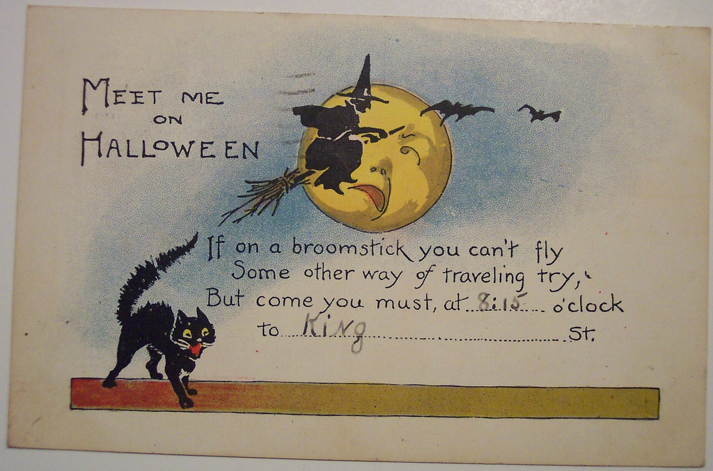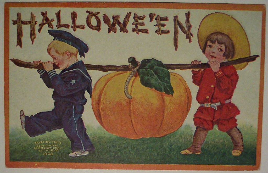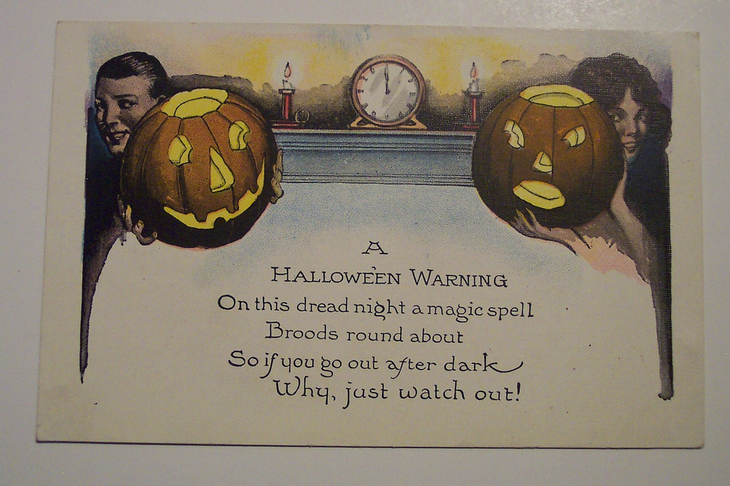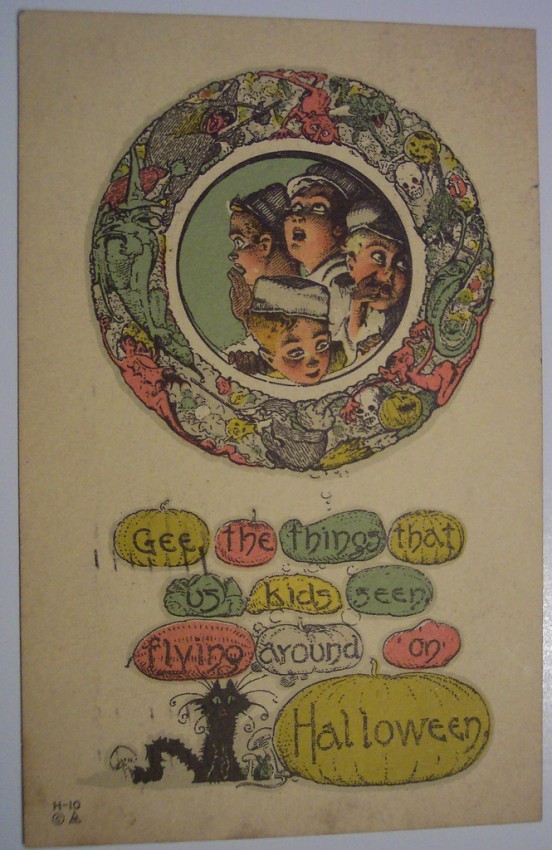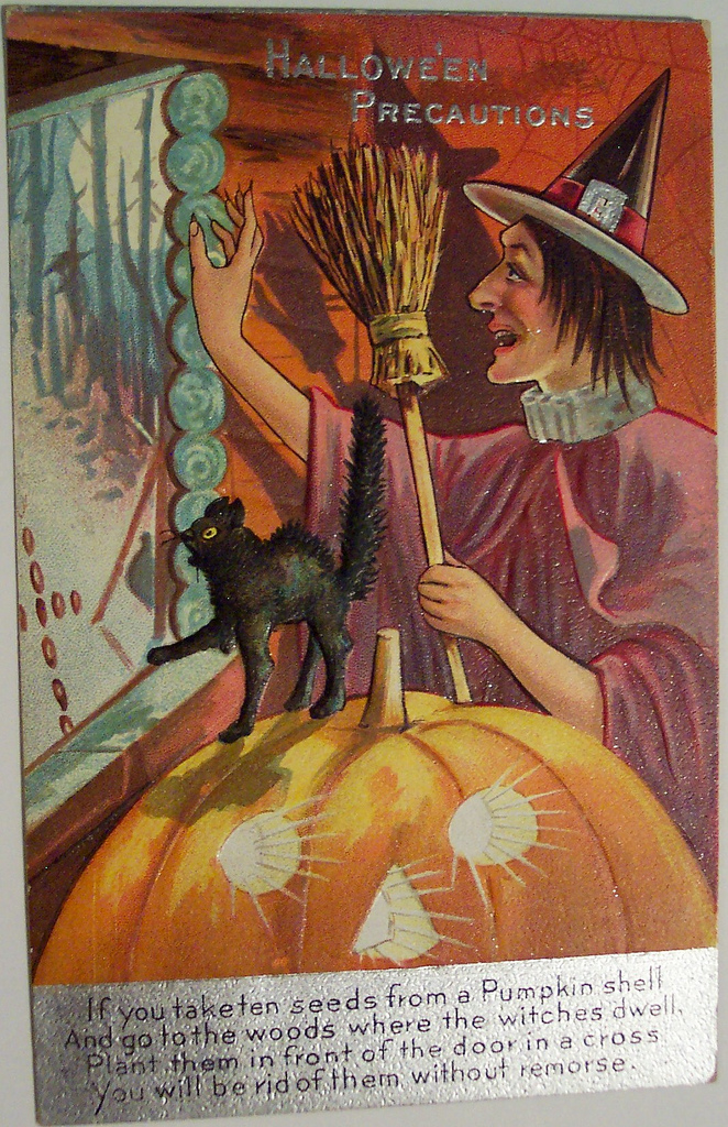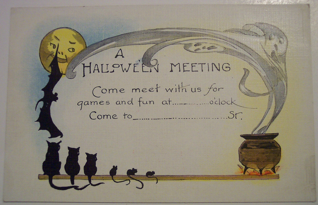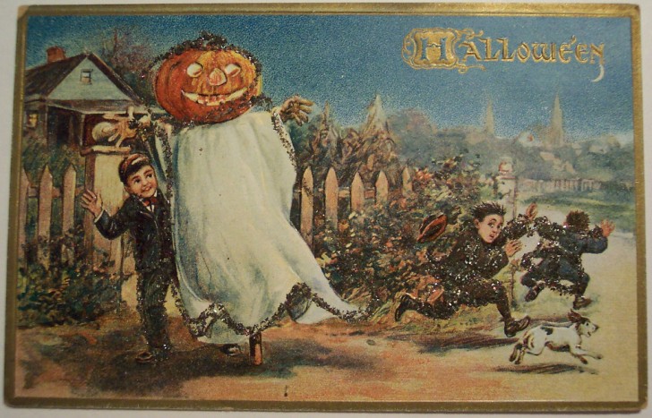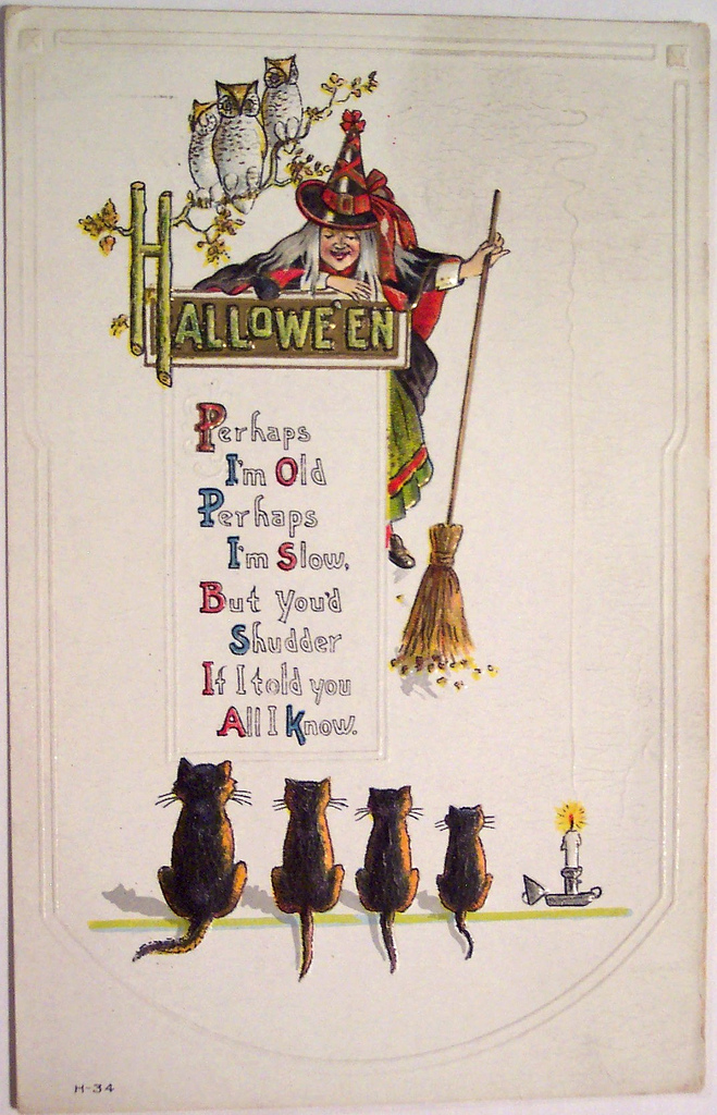 Presentamos varias postales de Halloween con un ambiente antiguo y vintage muy evocador, donde las calabazas, tiernos infantes, gatos, brujas y demás elementos tenebrosos se dan cita.