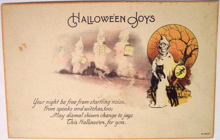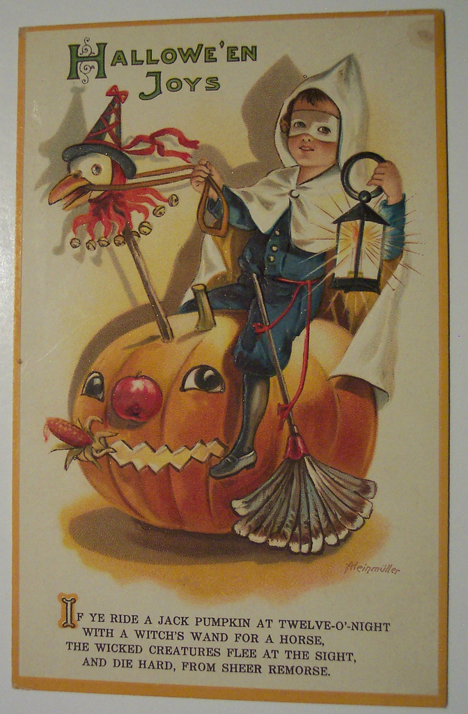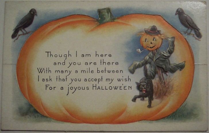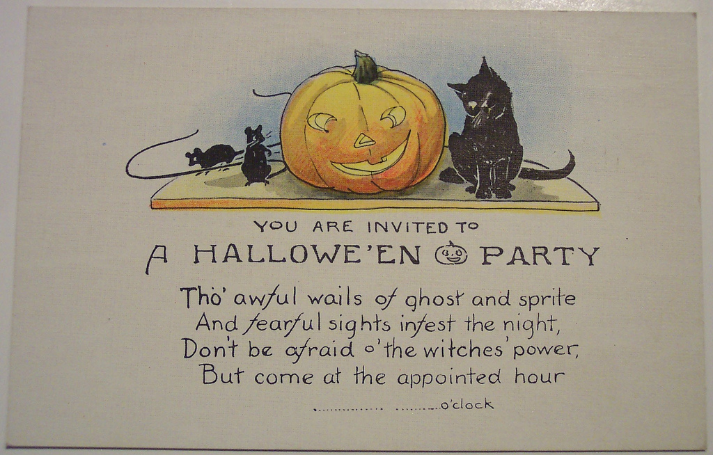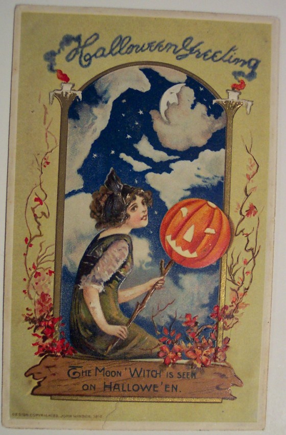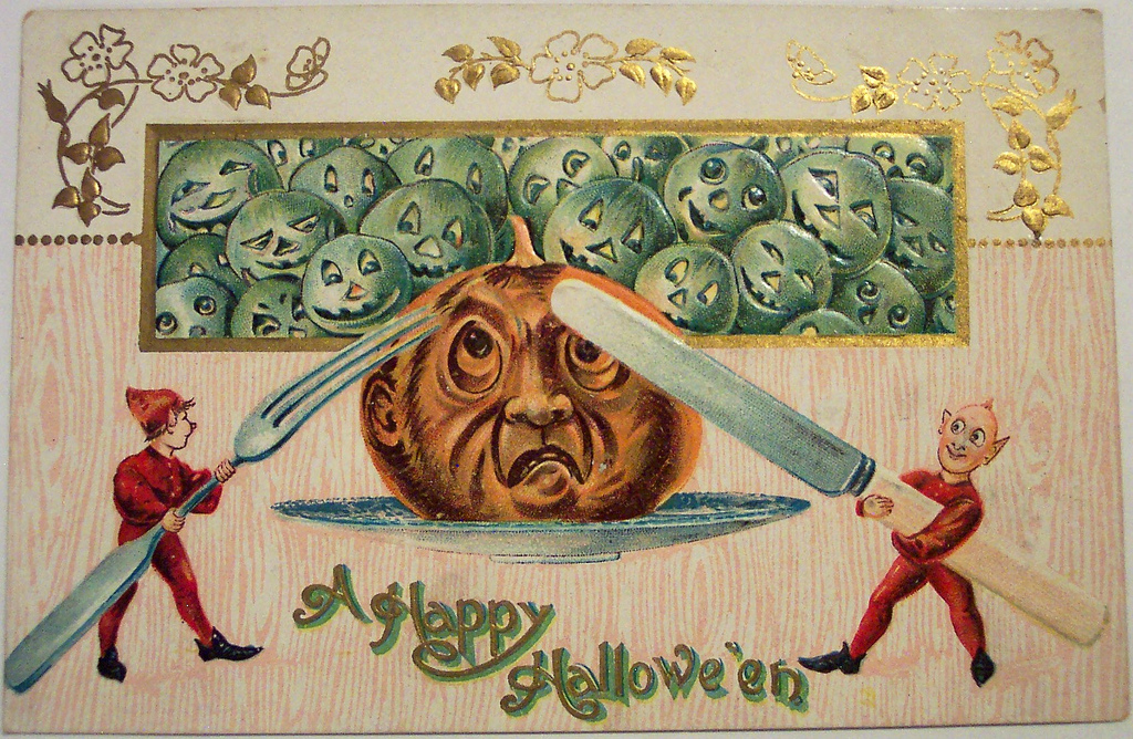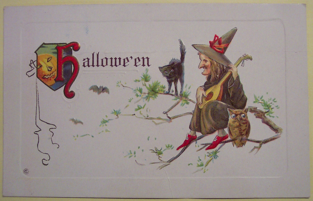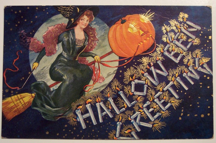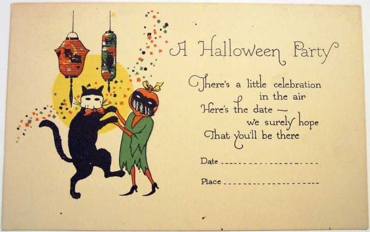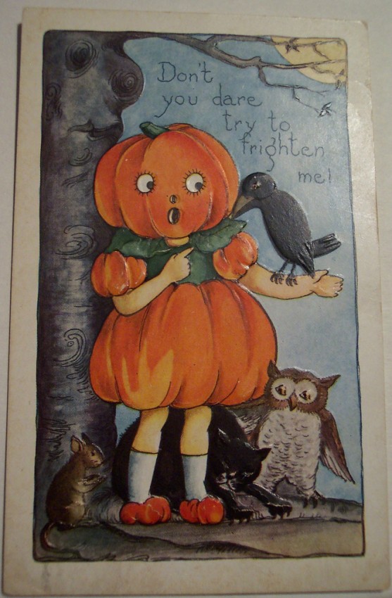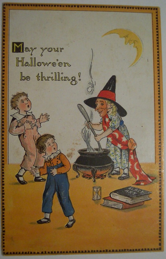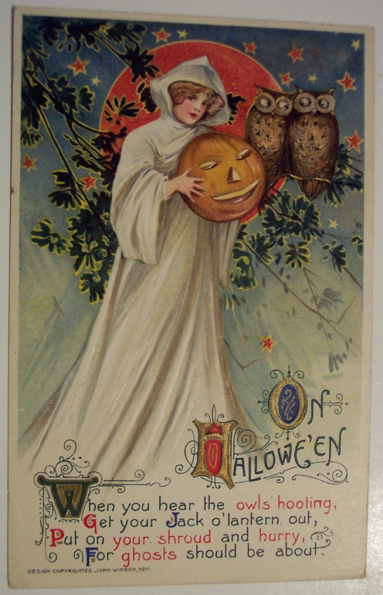 Presentamos varias postales de Halloween con un ambiente antiguo y vintage muy evocador, donde las calabazas, tiernos infantes, gatos, brujas y demás elementos tenebrosos se dan cita.