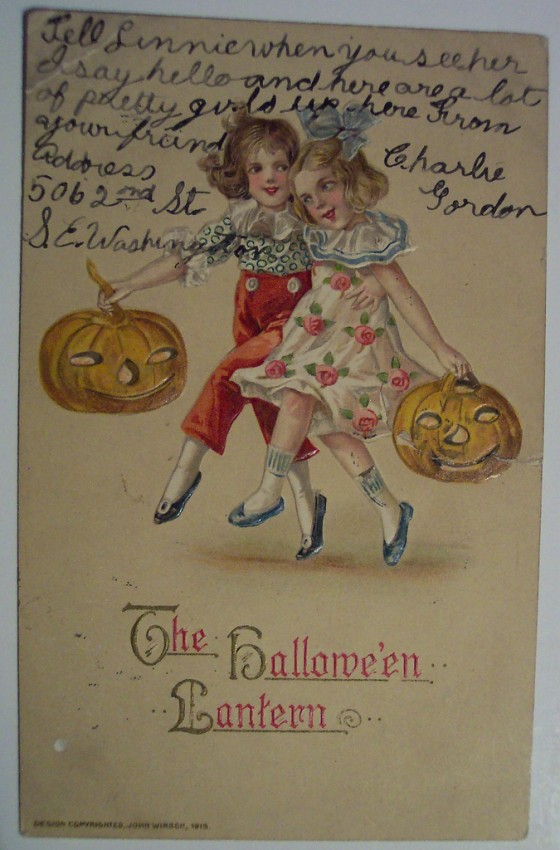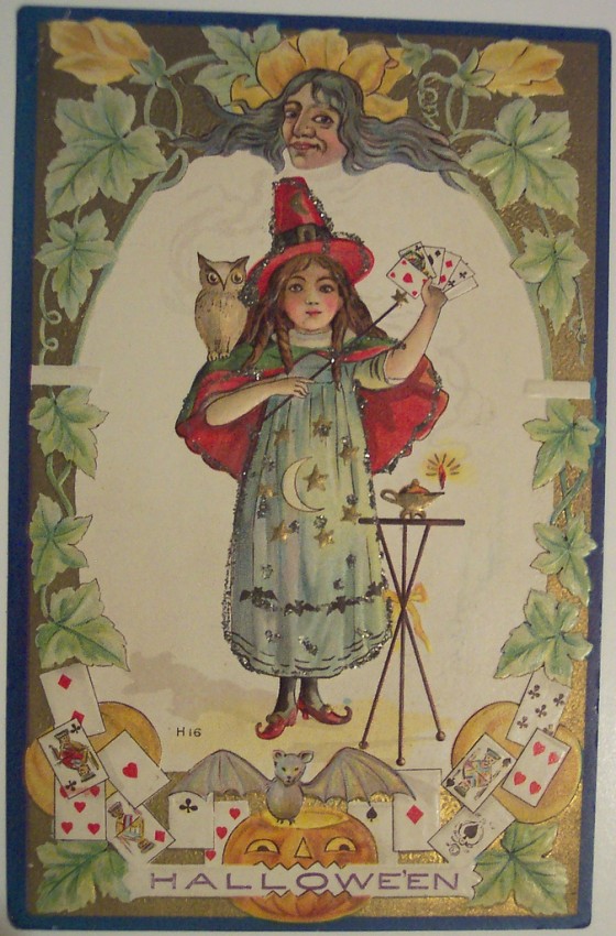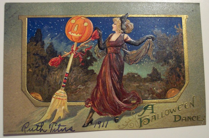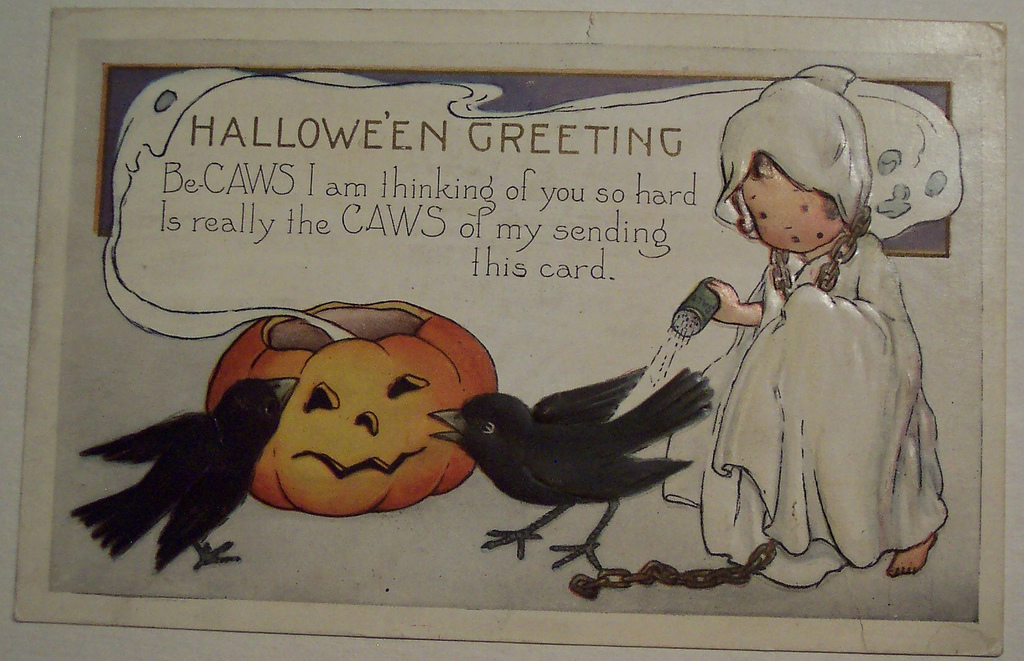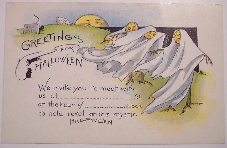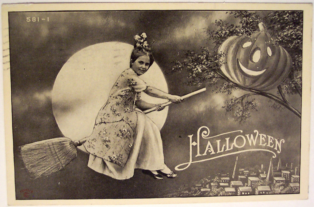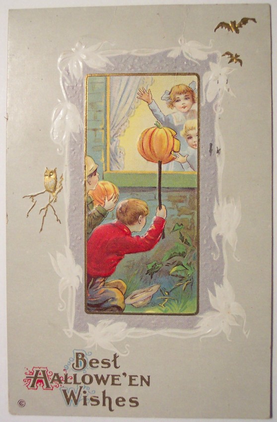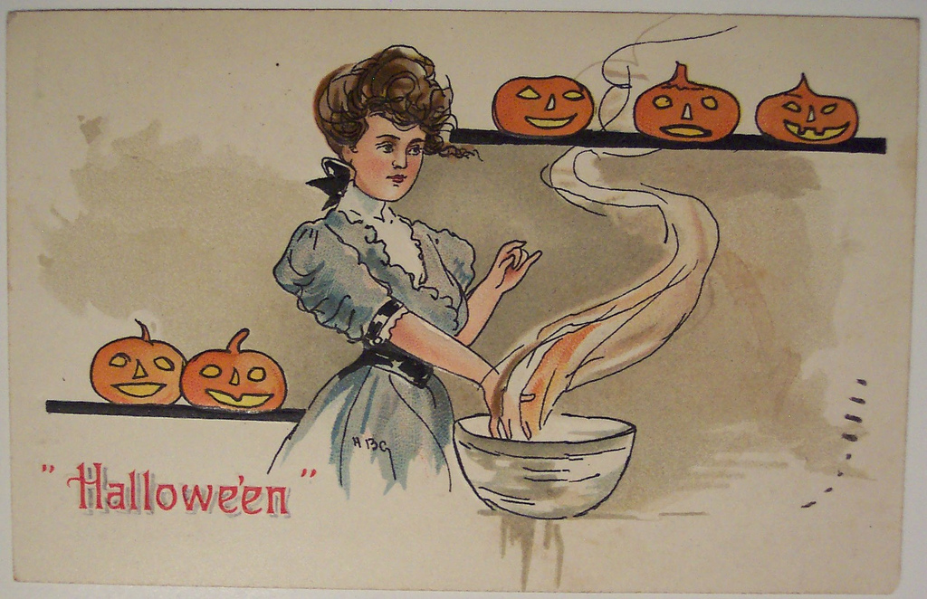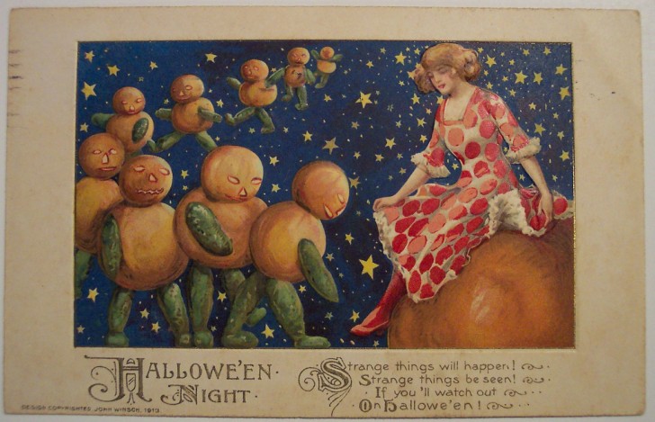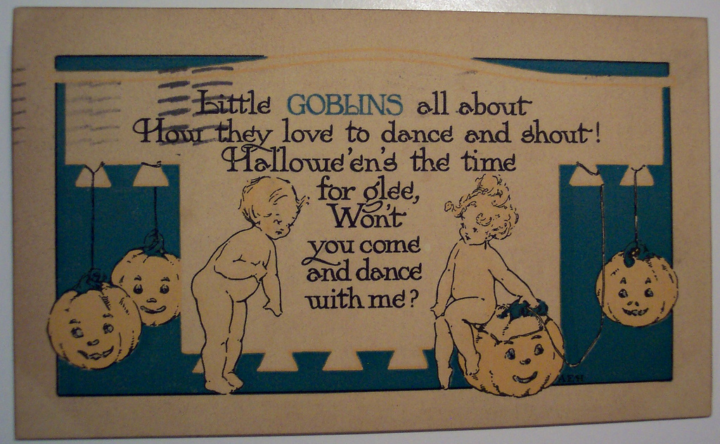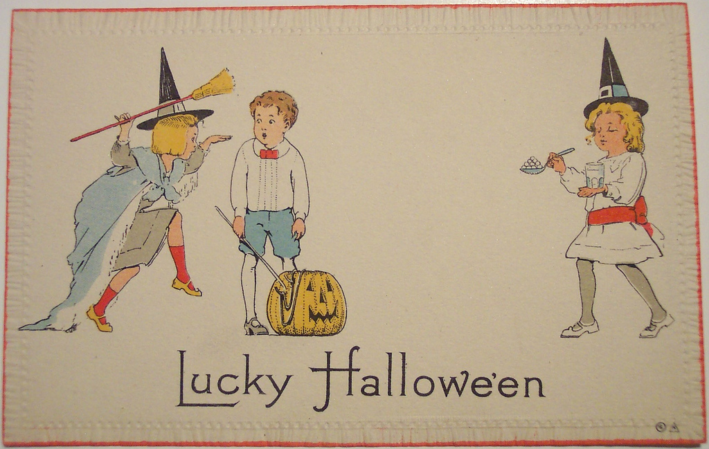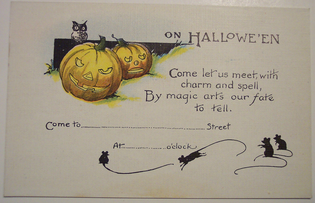 Presentamos varias postales de Halloween con un ambiente antiguo y vintage muy evocador, donde las calabazas, tiernos infantes, gatos, brujas y demás elementos tenebrosos se dan cita.