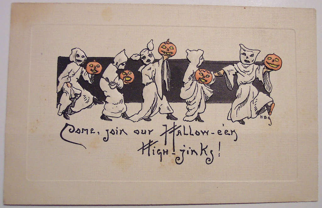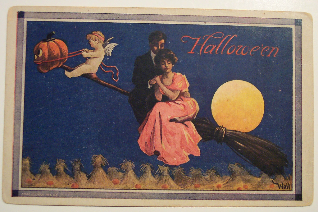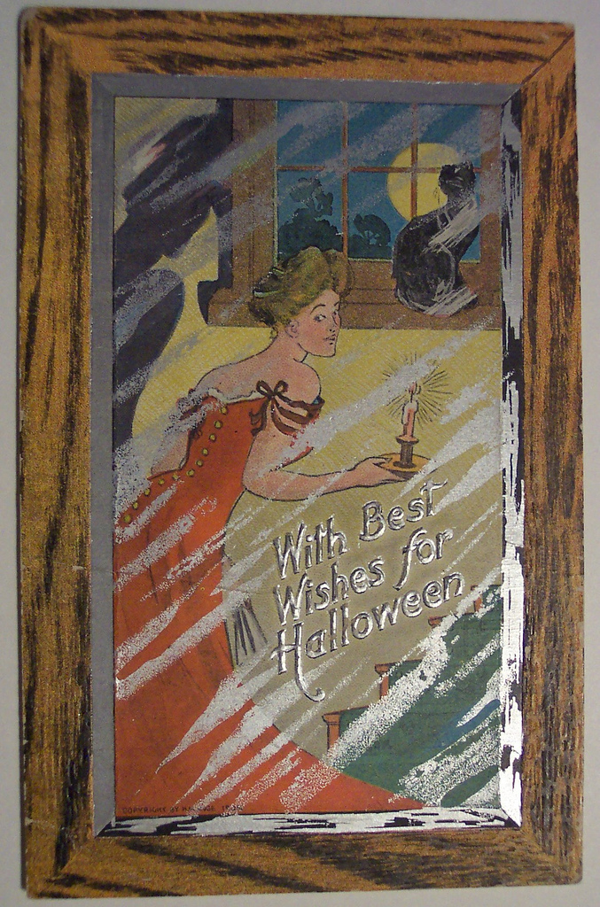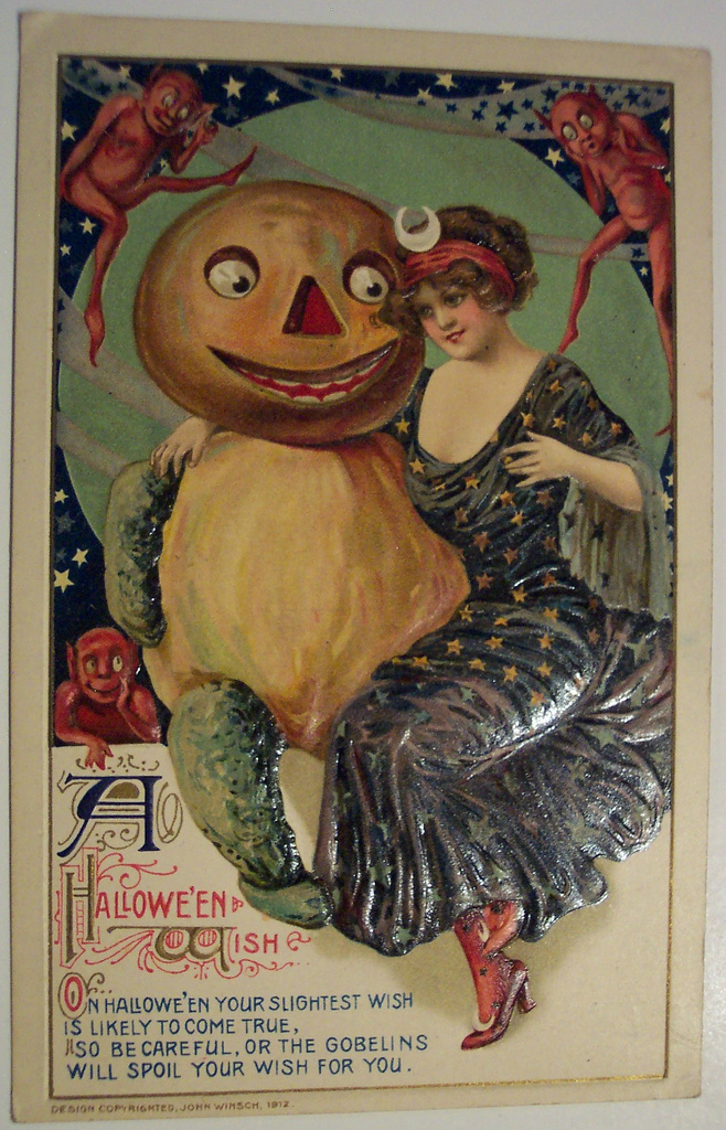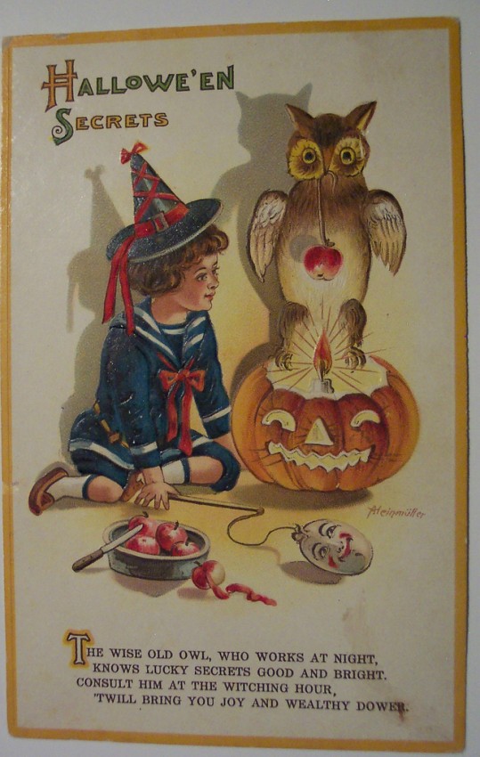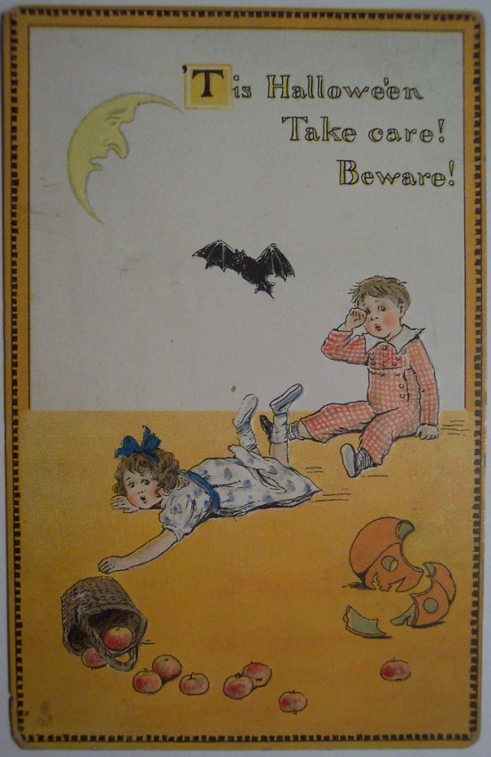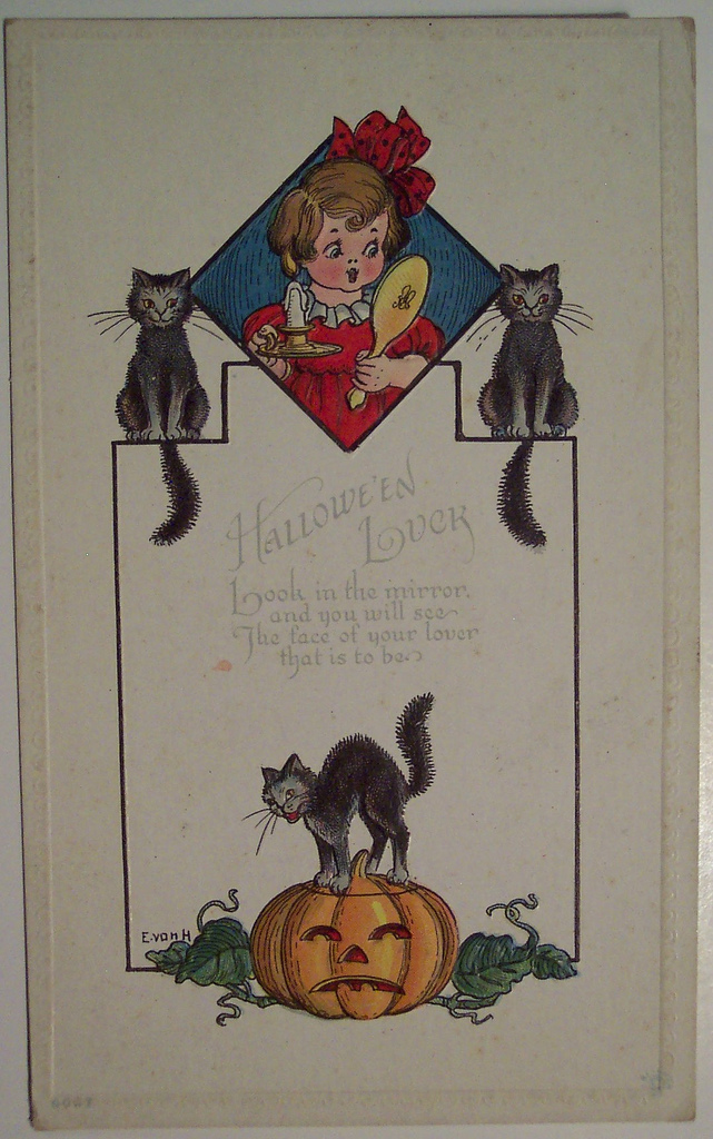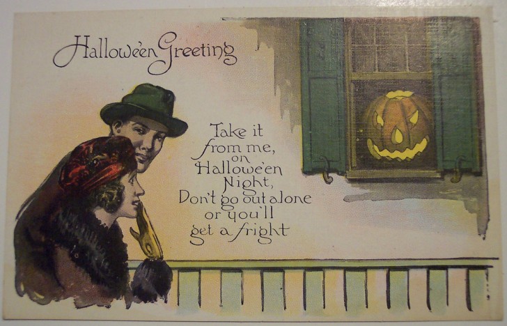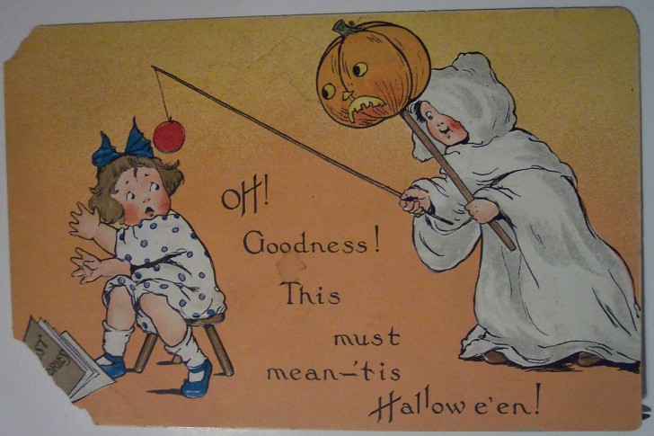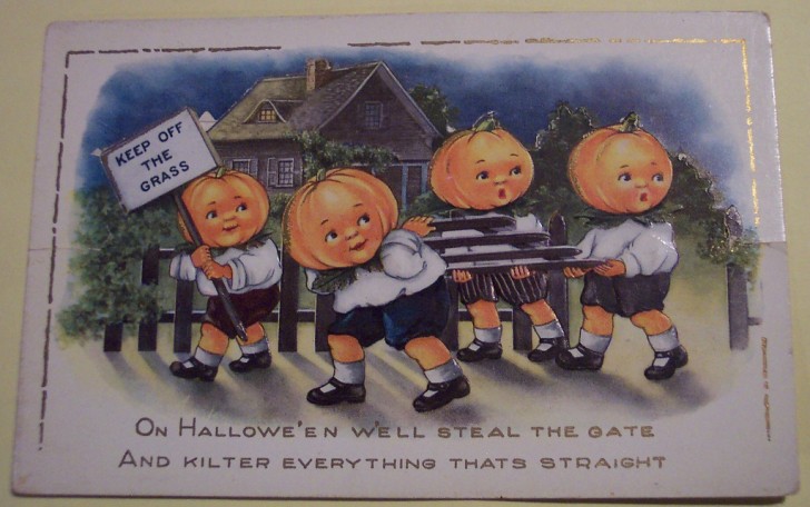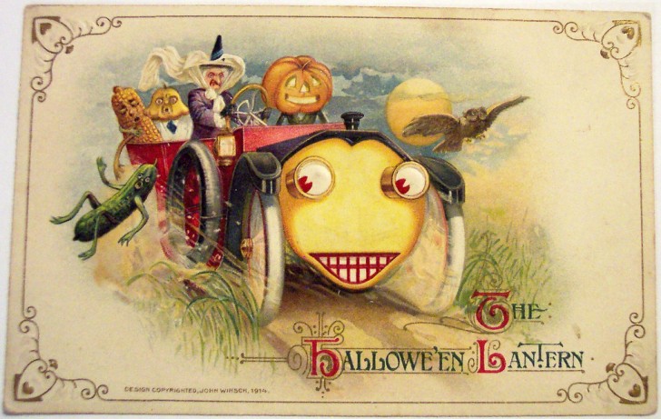 Presentamos varias postales de Halloween con un ambiente antiguo y vintage muy evocador, donde las calabazas, tiernos infantes, gatos, brujas y demás elementos tenebrosos se dan cita.