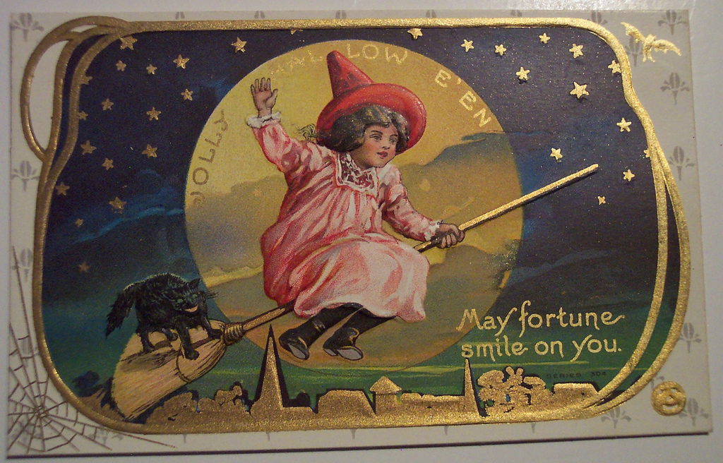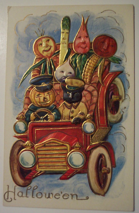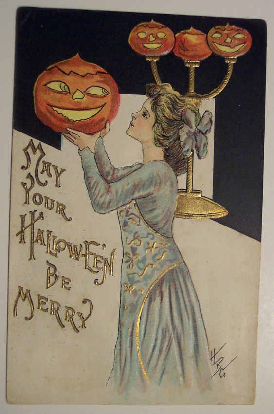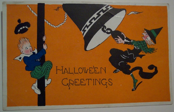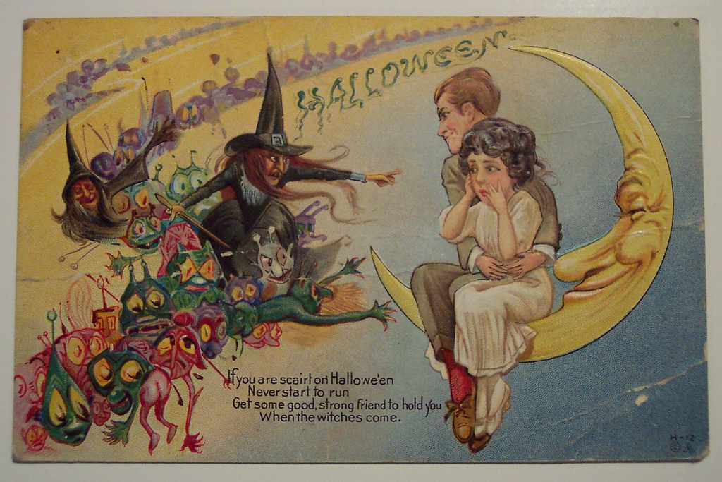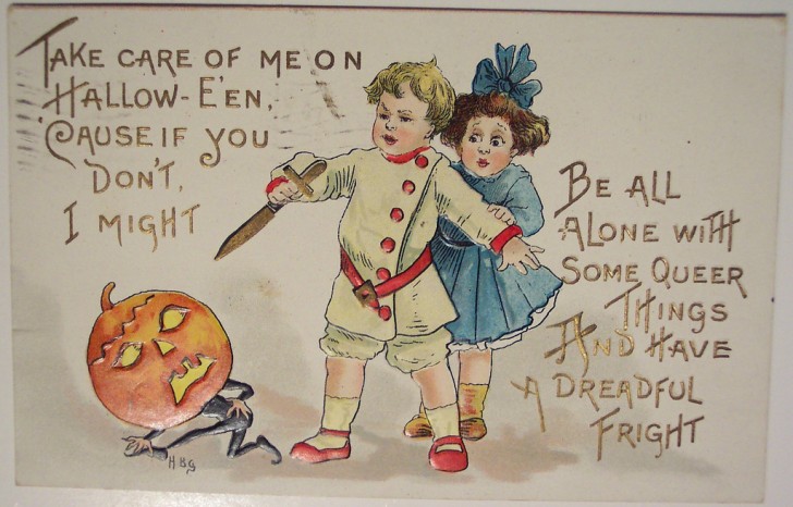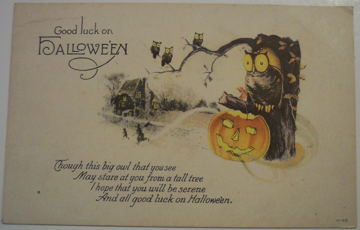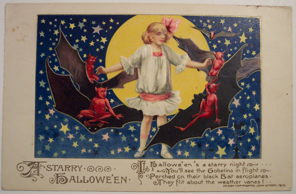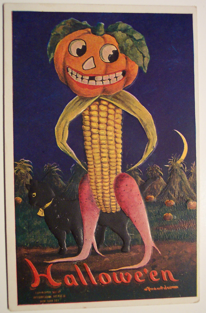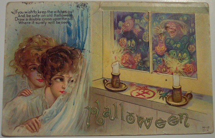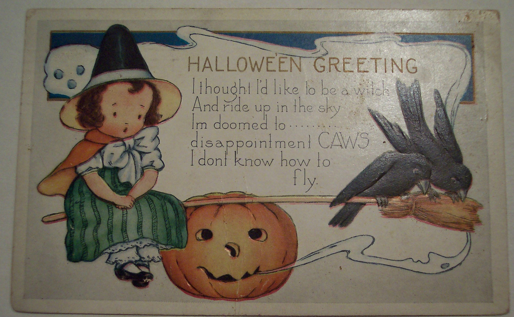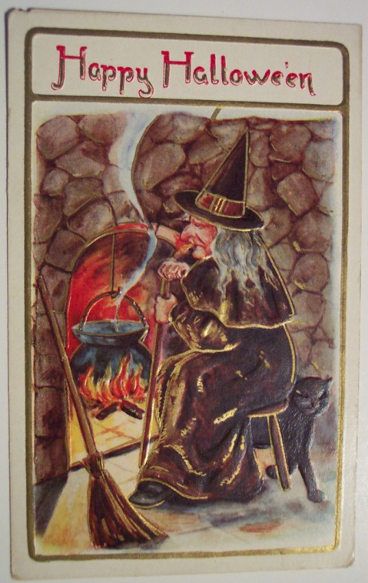 Presentamos varias postales de Halloween con un ambiente antiguo y vintage muy evocador, donde las calabazas, tiernos infantes, gatos, brujas y demás elementos tenebrosos se dan cita.
