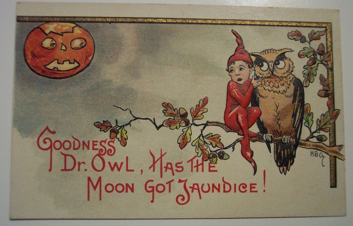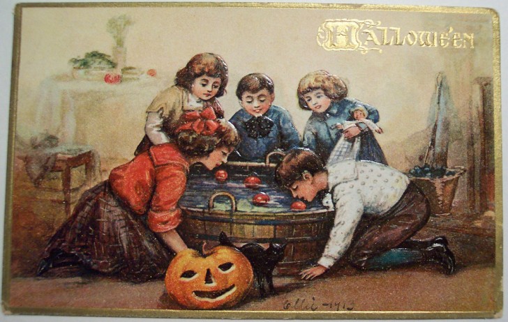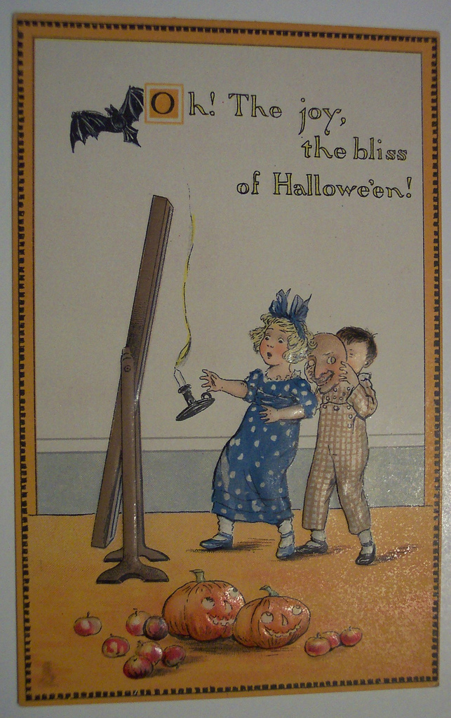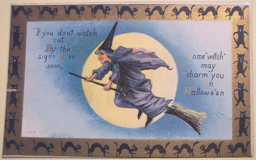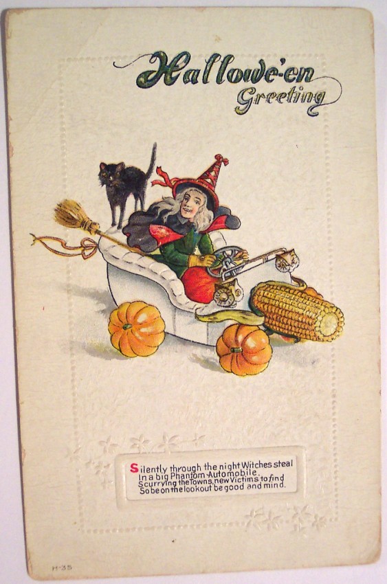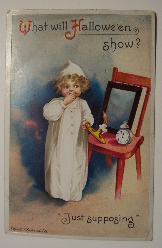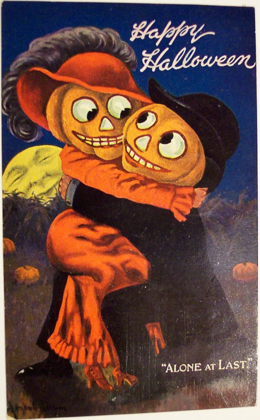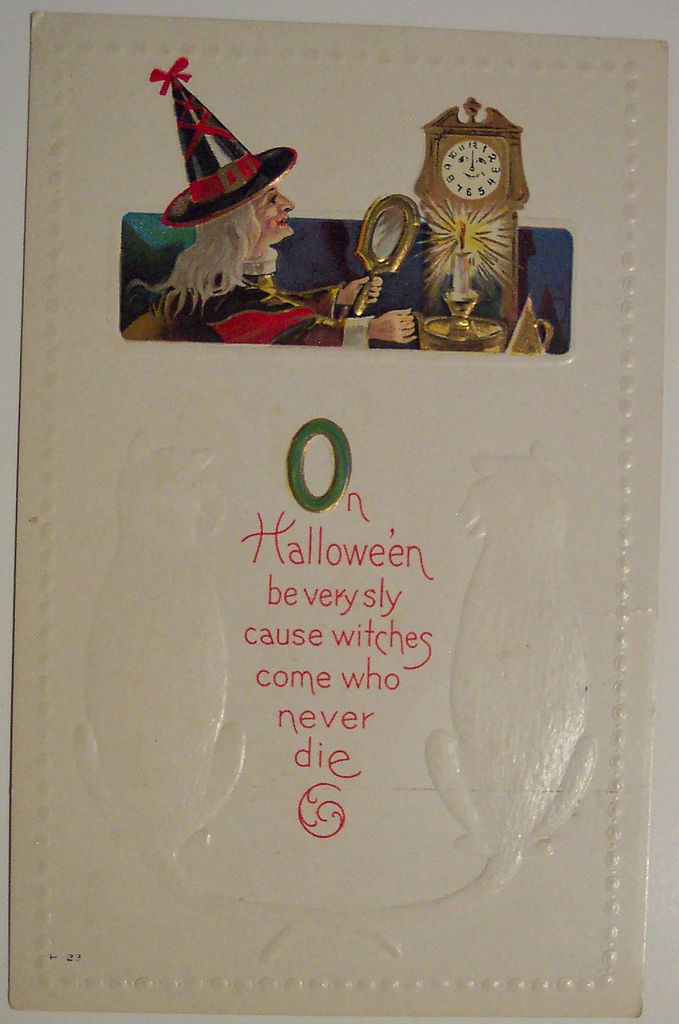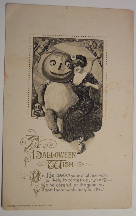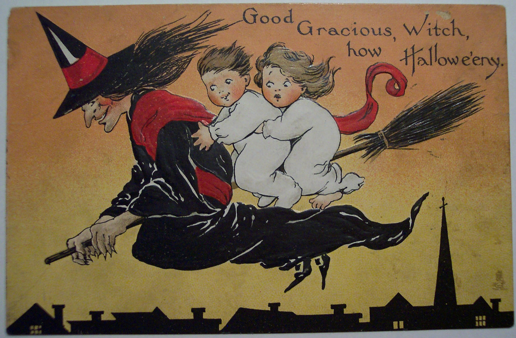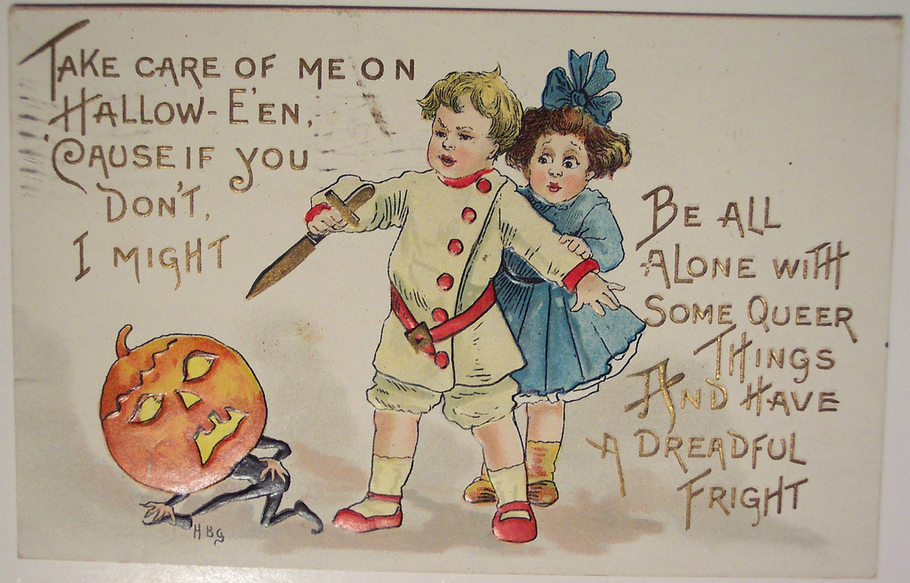 Presentamos varias postales de Halloween con un ambiente antiguo y vintage muy evocador, donde las calabazas, tiernos infantes, gatos, brujas y demás elementos tenebrosos se dan cita.