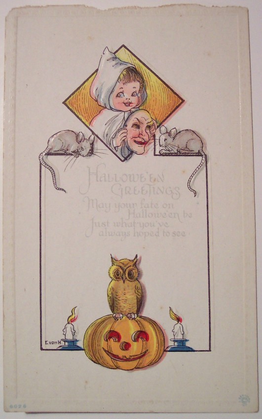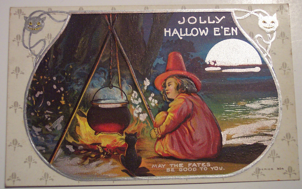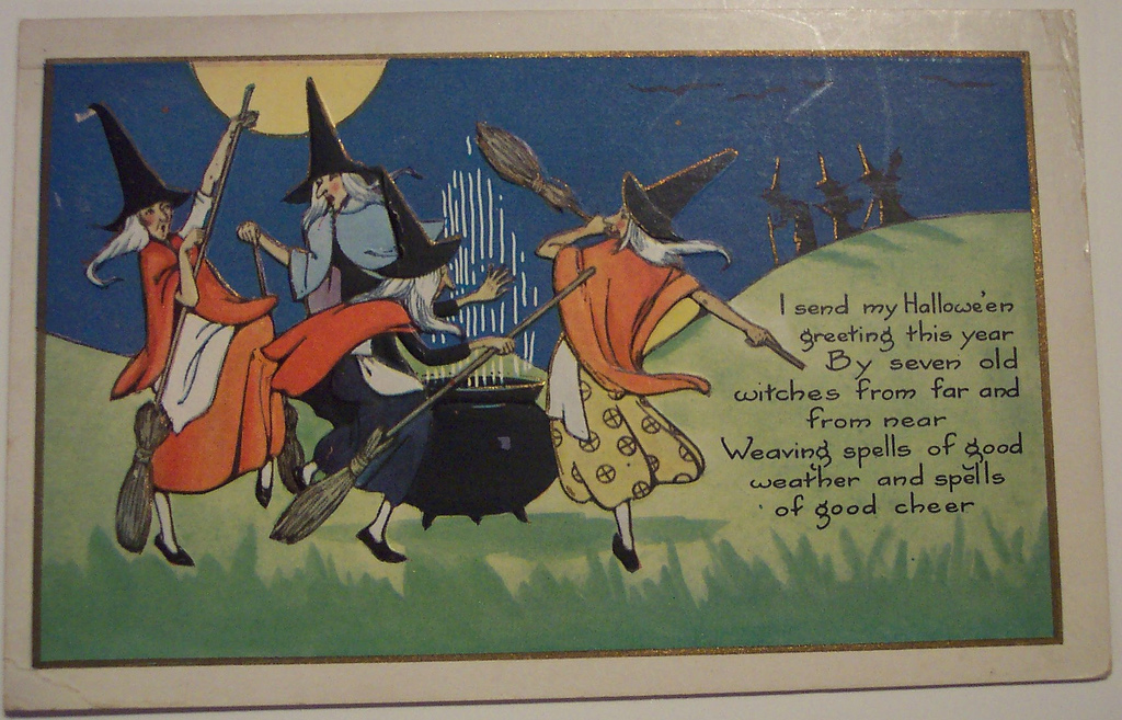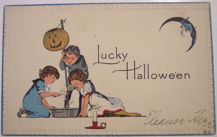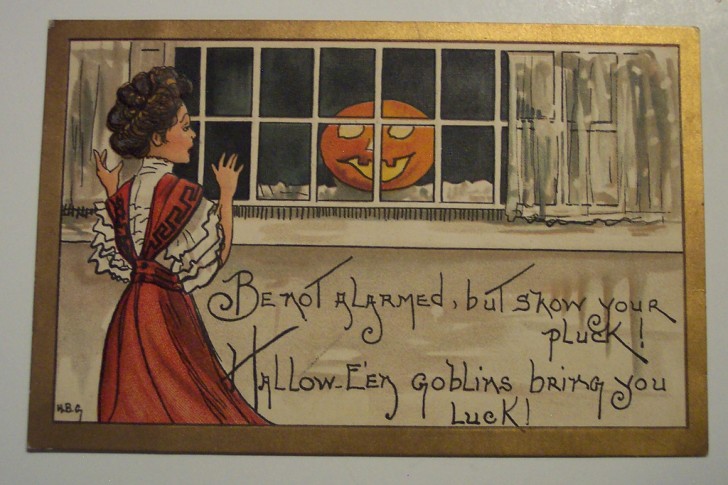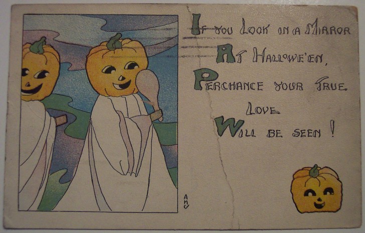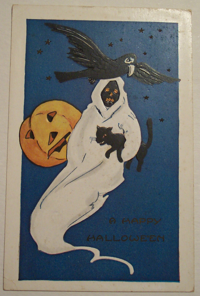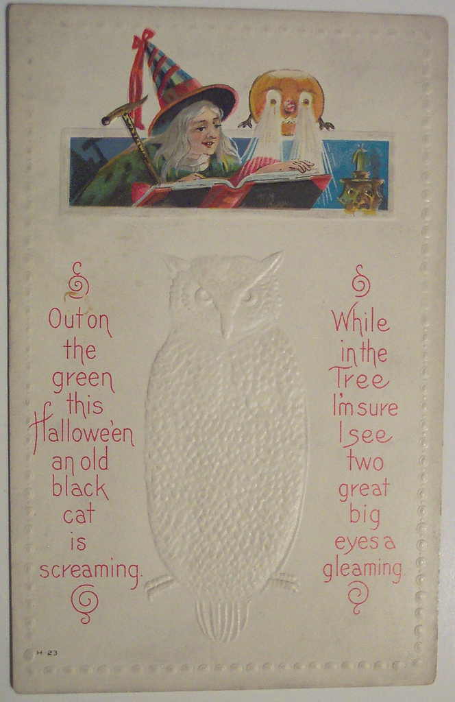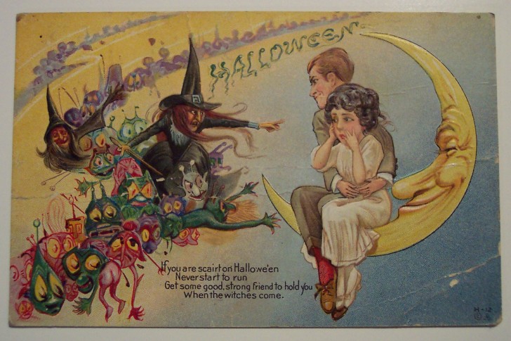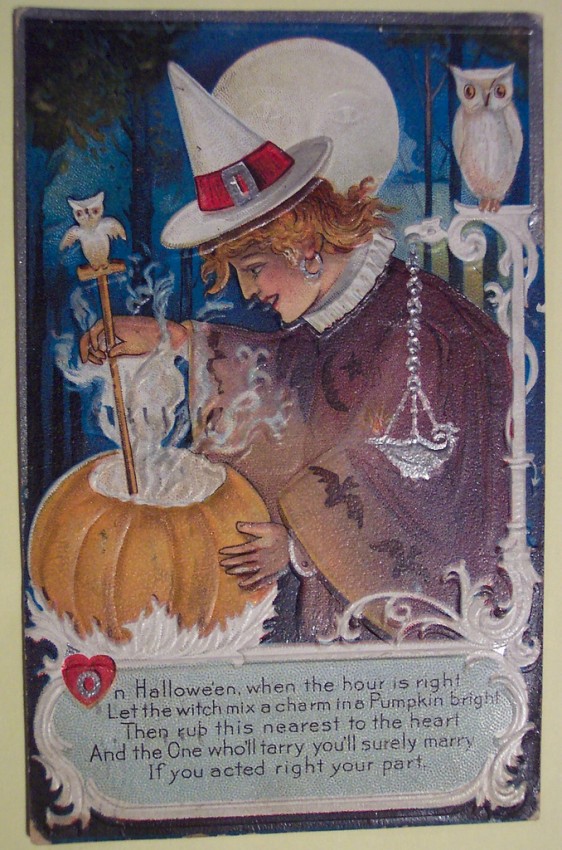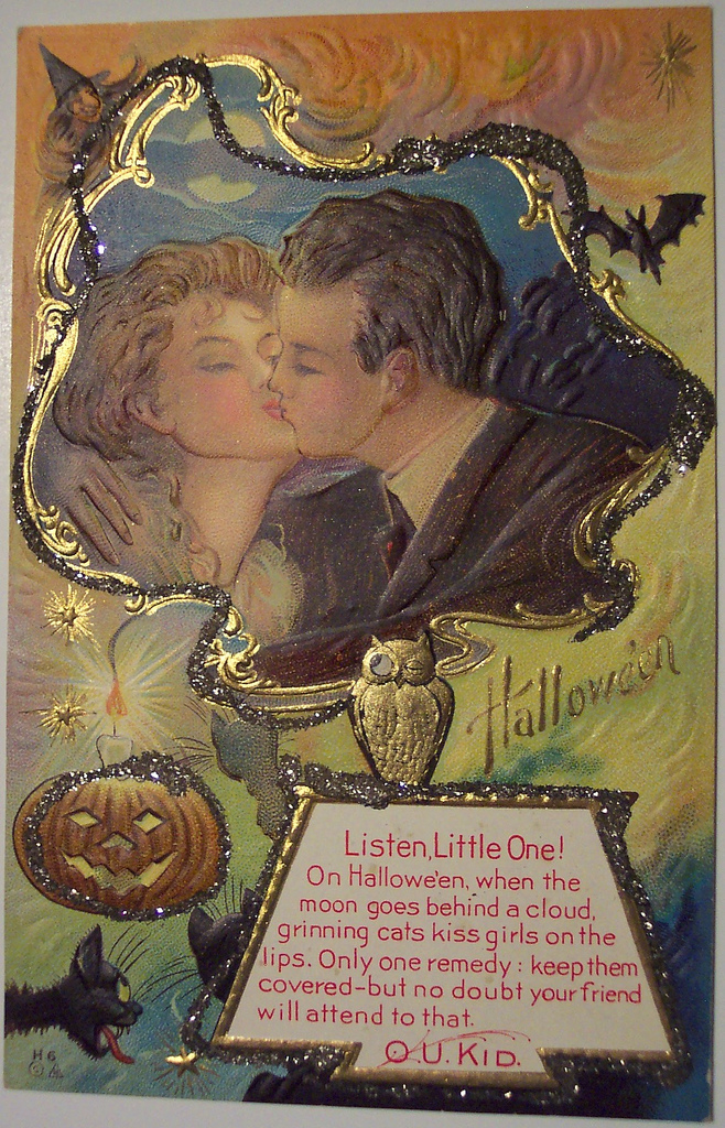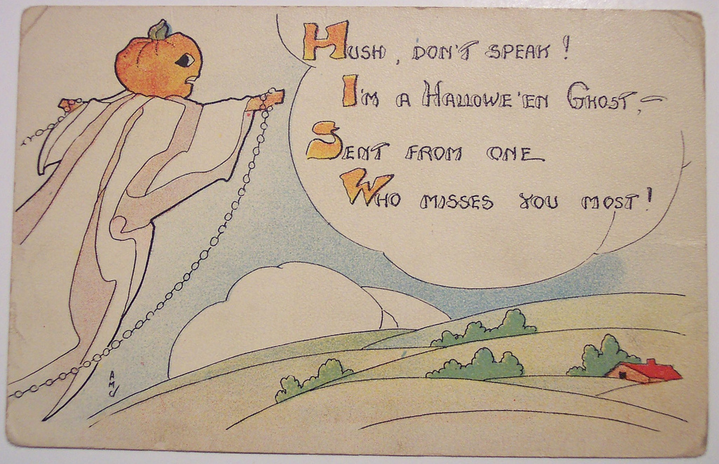 Presentamos varias postales de Halloween con un ambiente antiguo y vintage muy evocador, donde las calabazas, tiernos infantes, gatos, brujas y demás elementos tenebrosos se dan cita.
