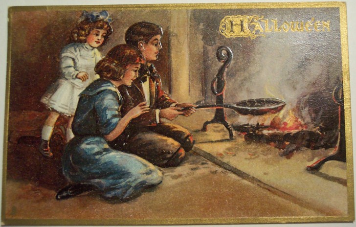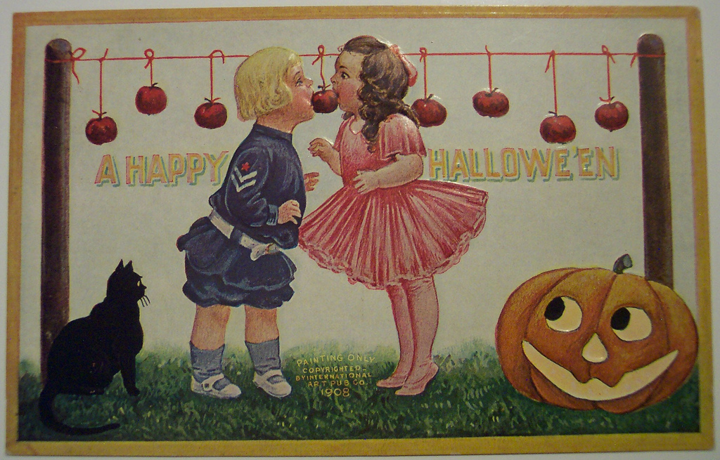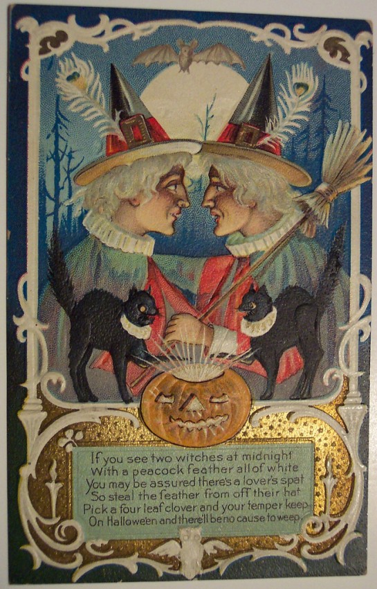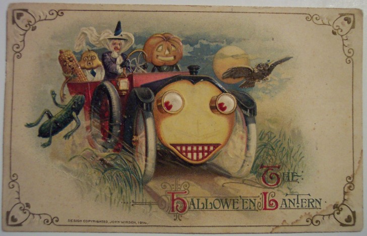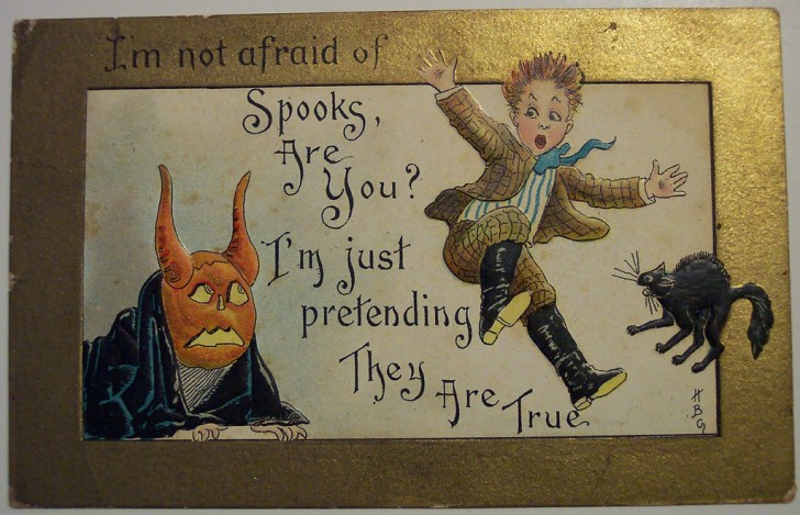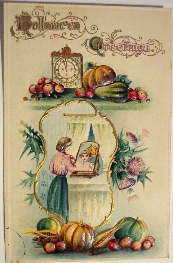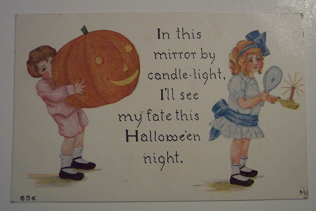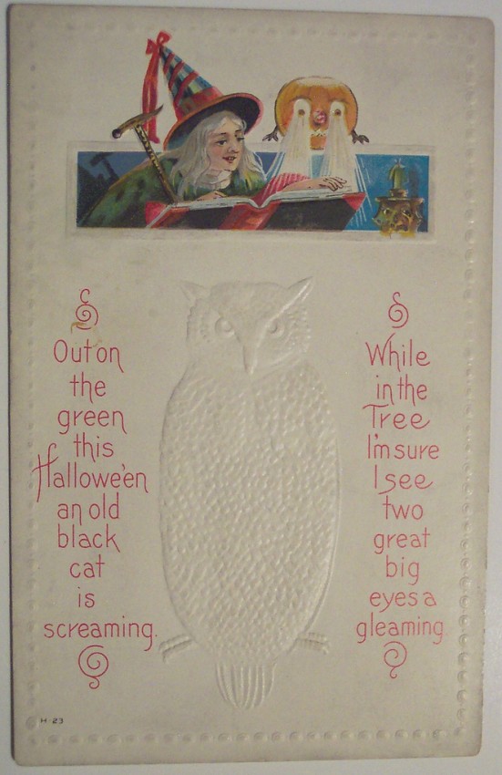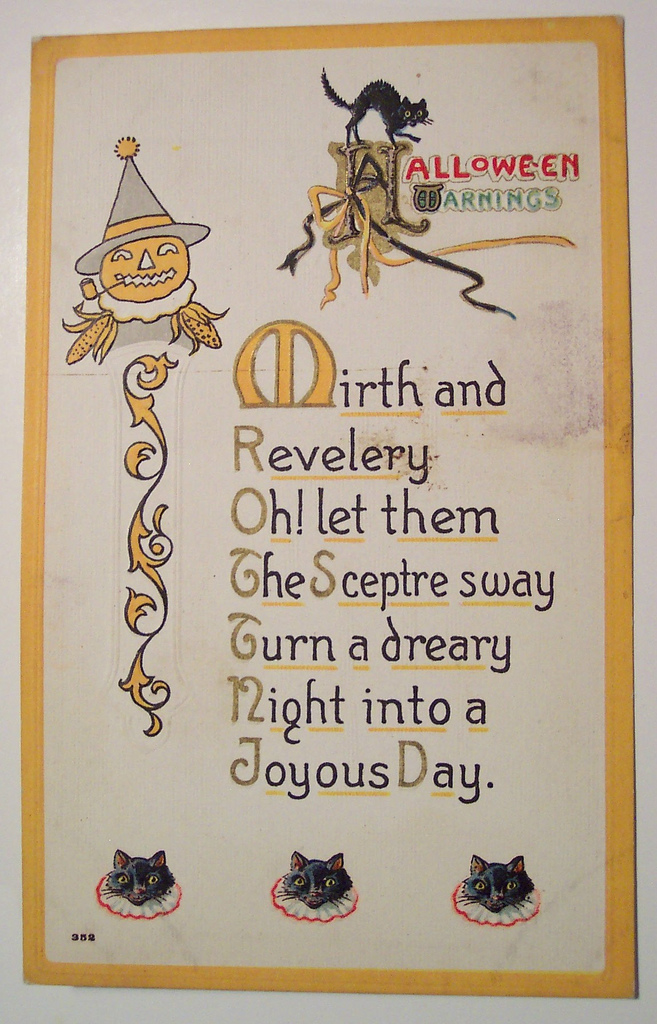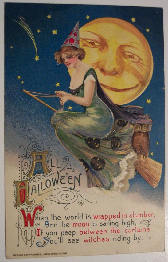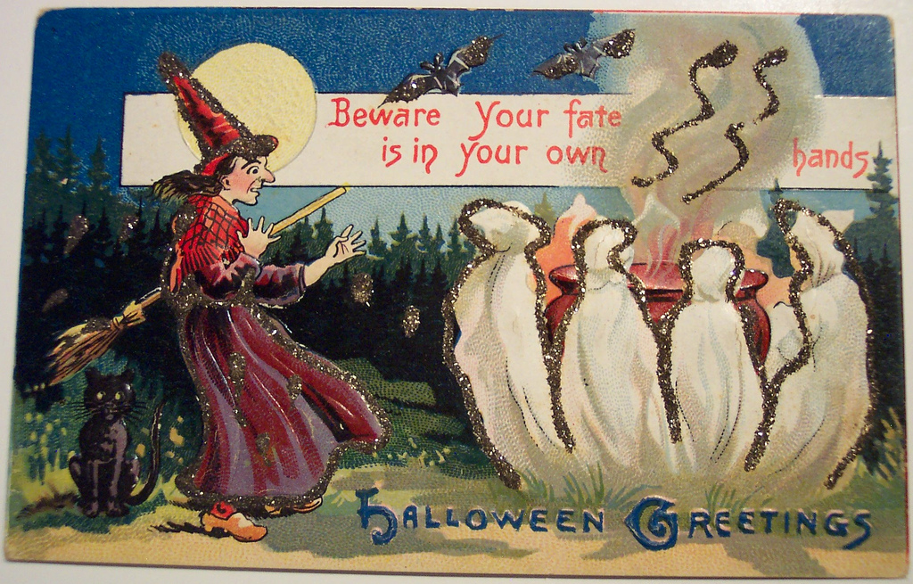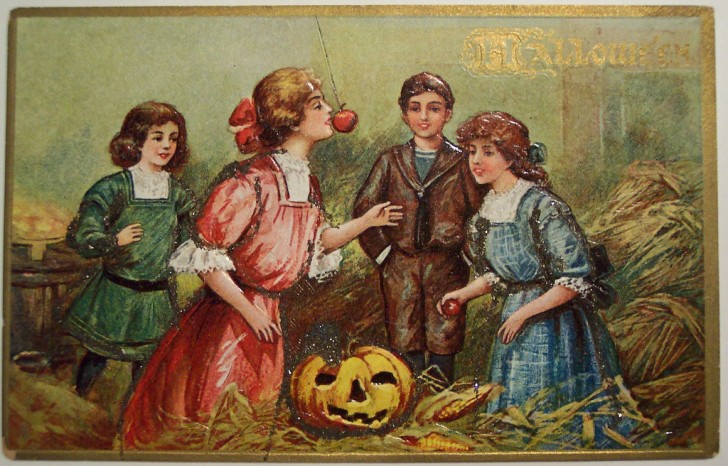 Presentamos varias postales de Halloween con un ambiente antiguo y vintage muy evocador, donde las calabazas, tiernos infantes, gatos, brujas y demás elementos tenebrosos se dan cita.