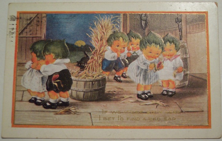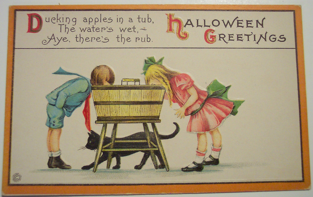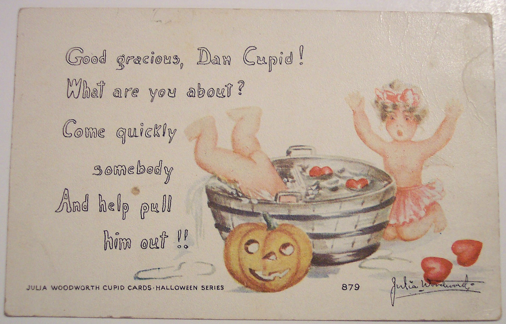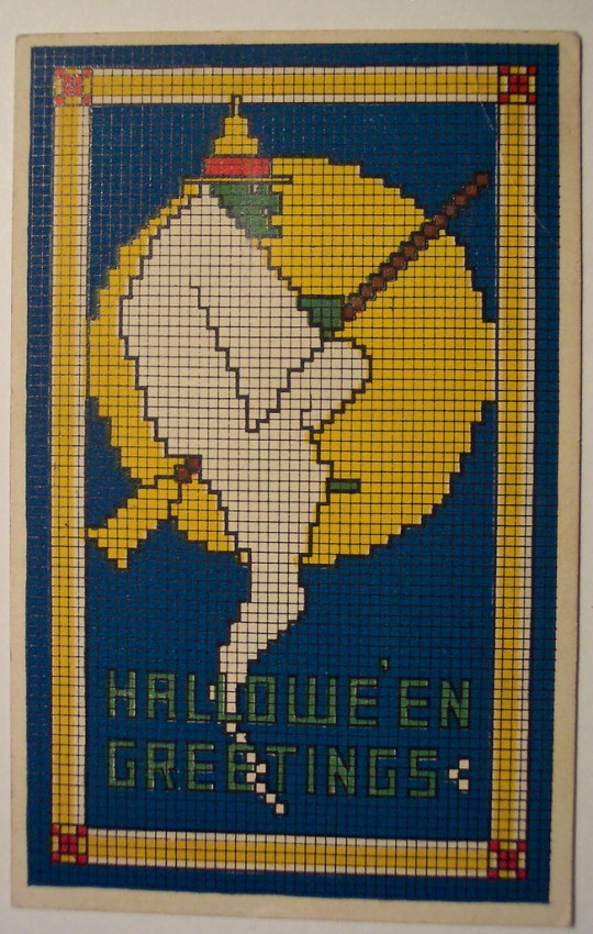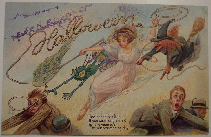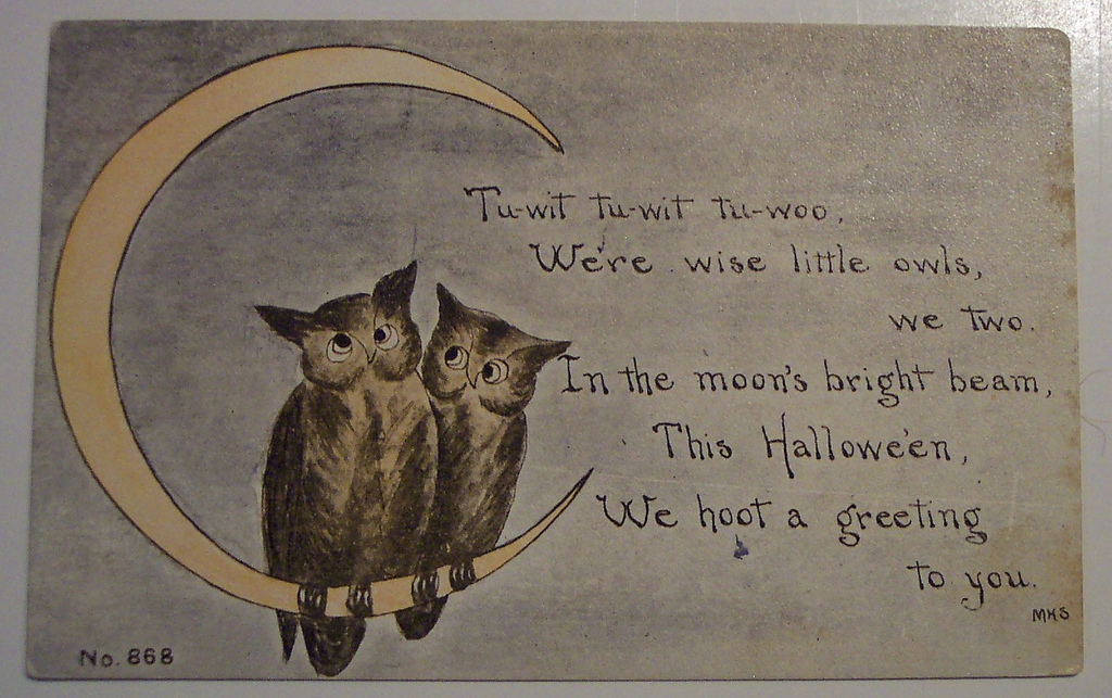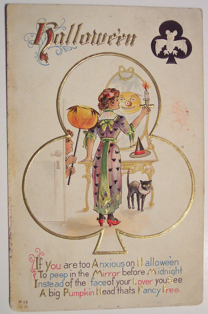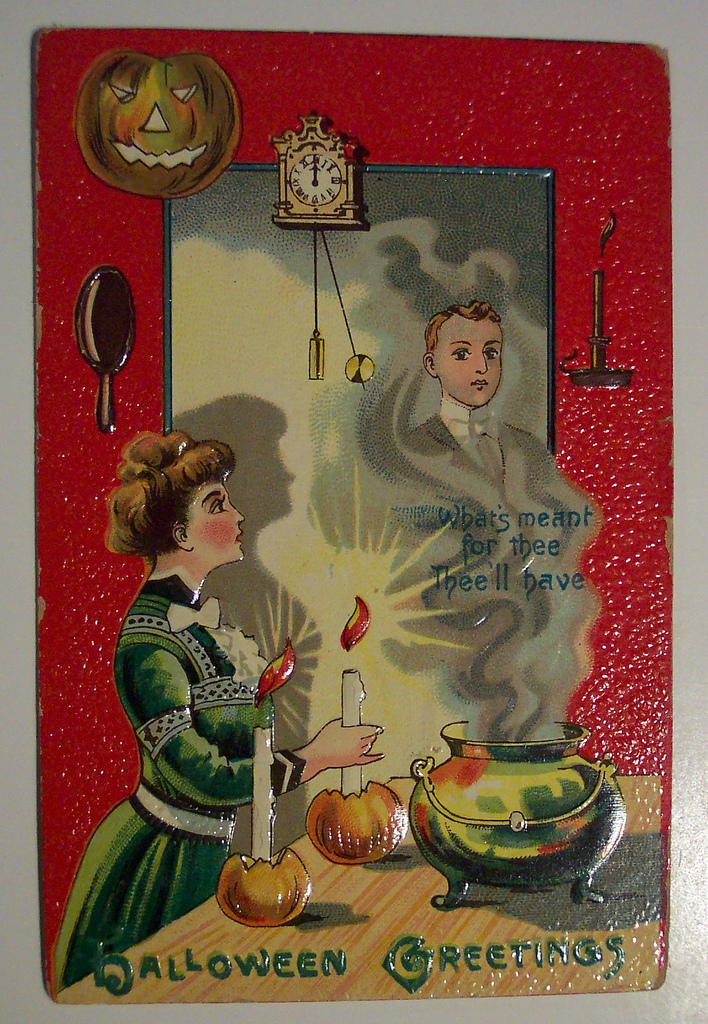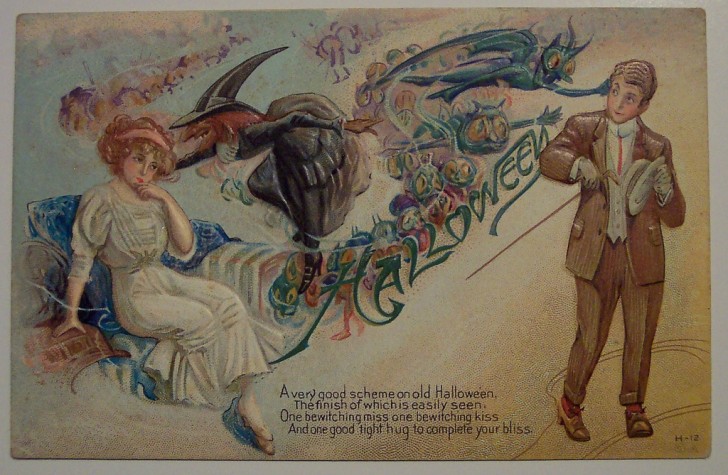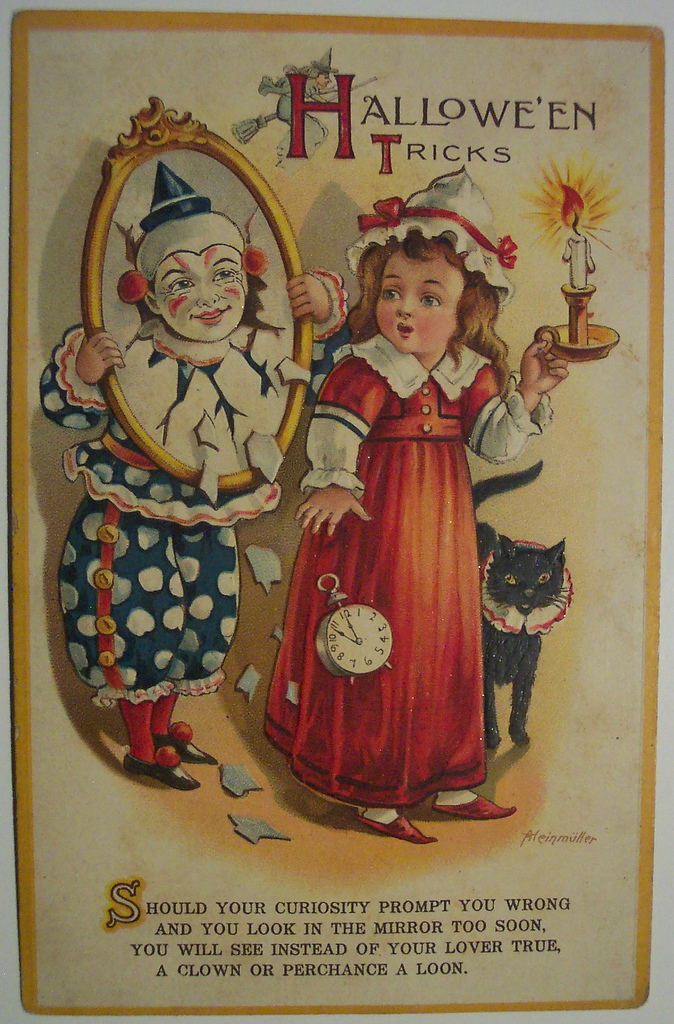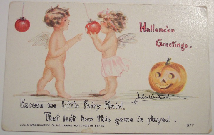 Presentamos varias postales de Halloween con un ambiente antiguo y vintage muy evocador, donde las calabazas, tiernos infantes, gatos, brujas y demás elementos tenebrosos se dan cita.