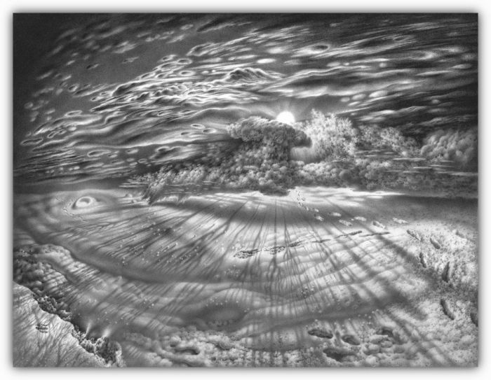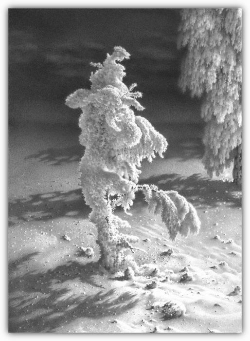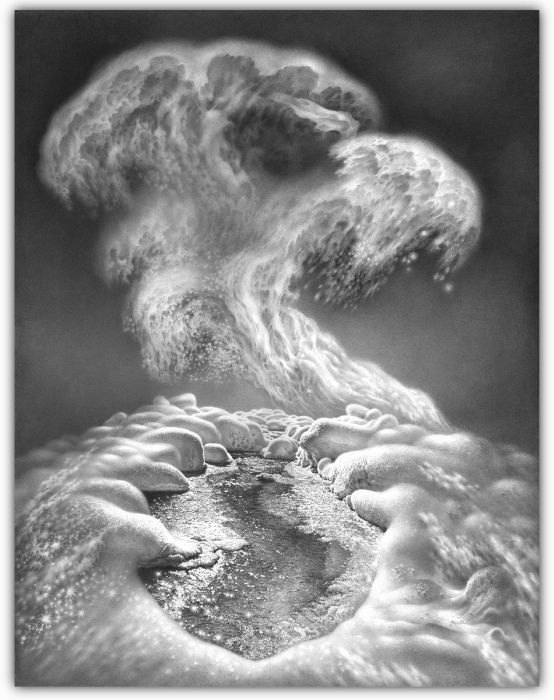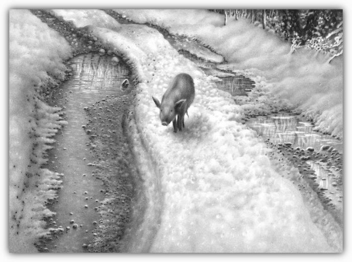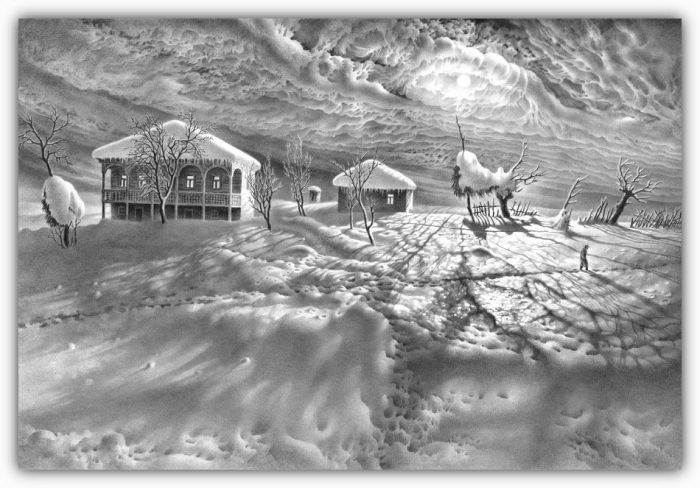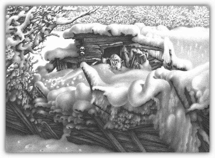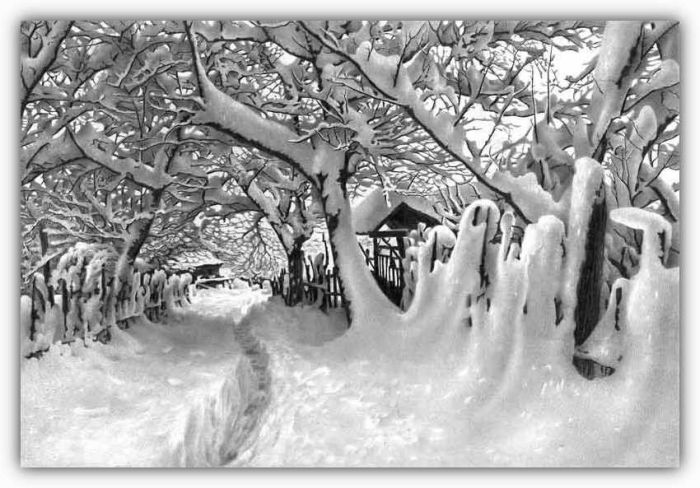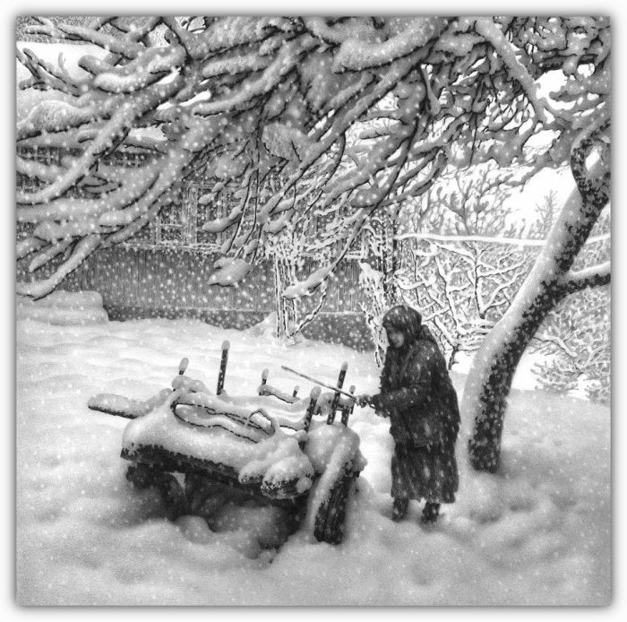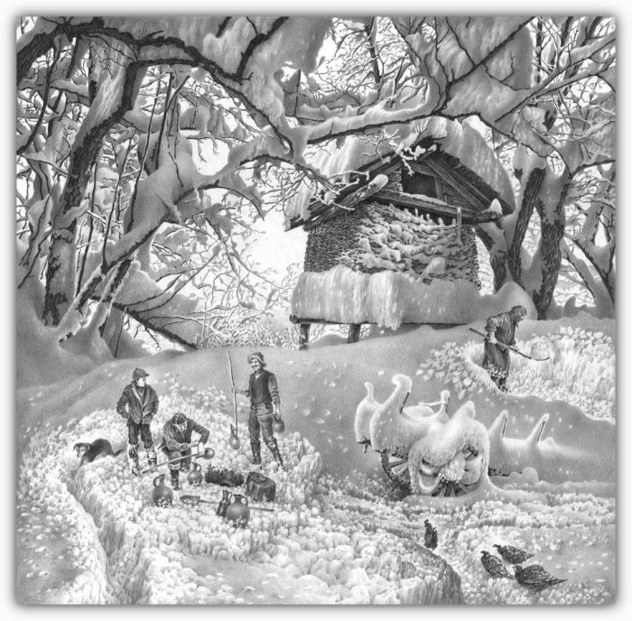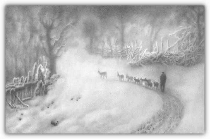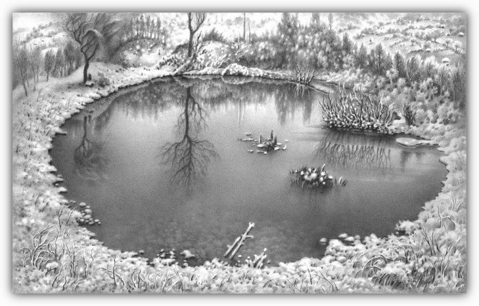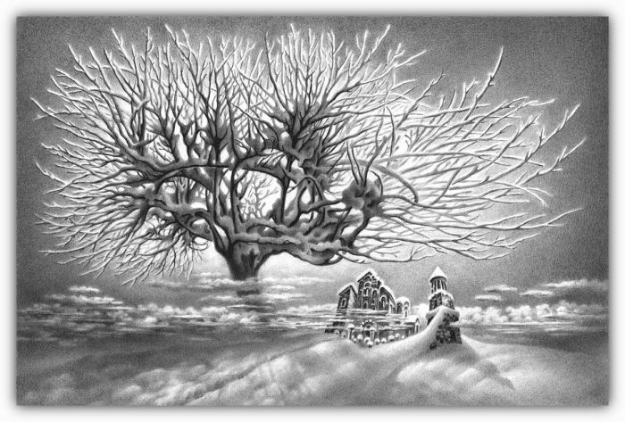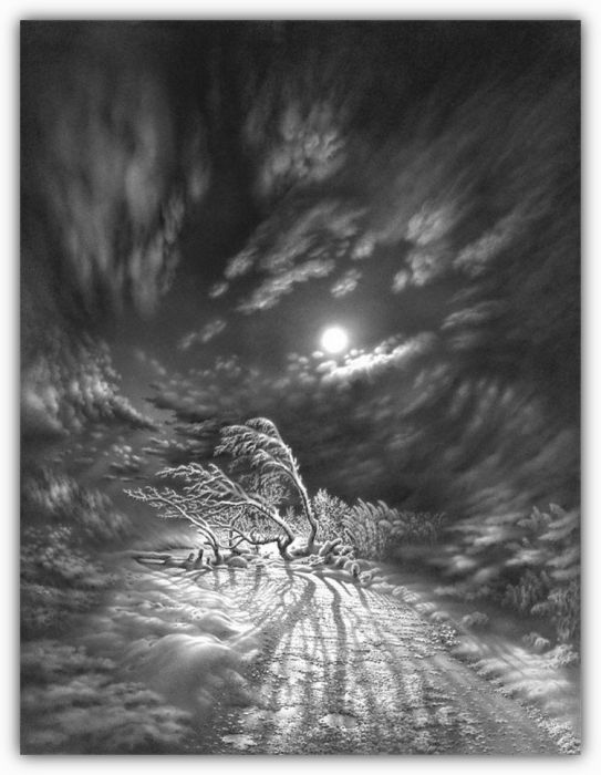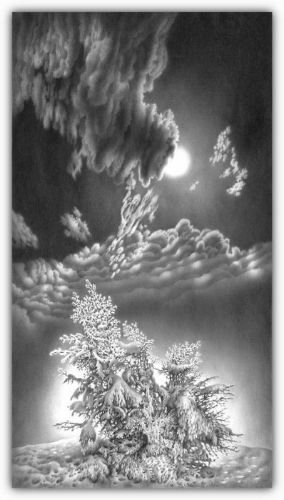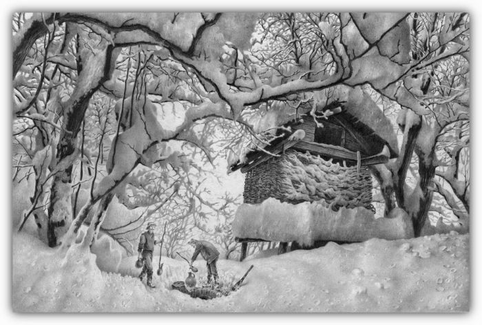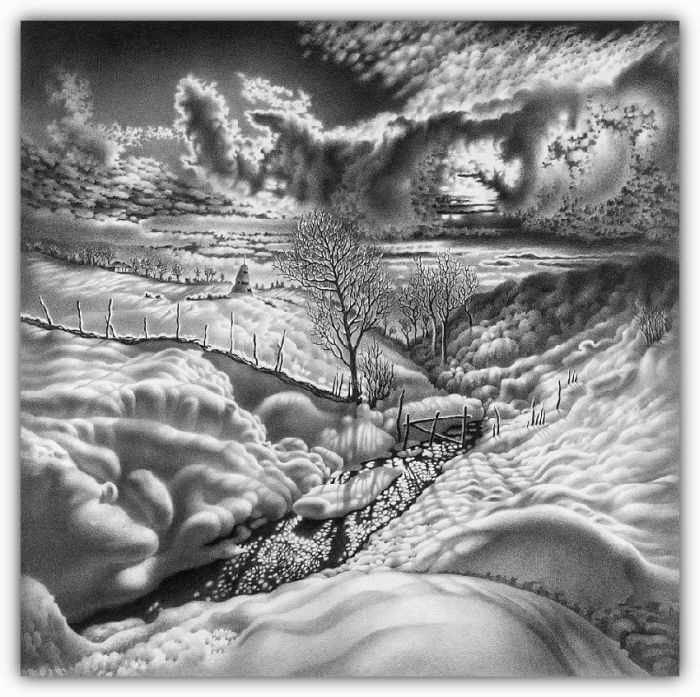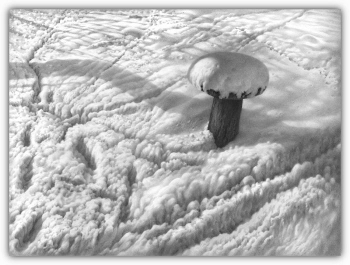 En estas bonitas imágenes podemos disfrutar de la paz y nostalgia de los paisajes naturales en invierno, aunque también nos produzcan esa sensación gélida que tanto repelús nos da en esta época tan fría. Los dibujos son en blanco y negro y están dibujados con una técnica impresionante en detalles.