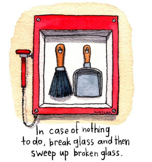 En caso de no tener nada que hacer, romper el cristal y barrer los cristales rotos.