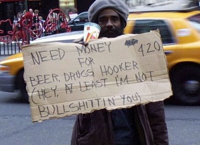Necesito dinero para cerveza, drogas y putas (Ey, al menos no te estoy mintiendo).