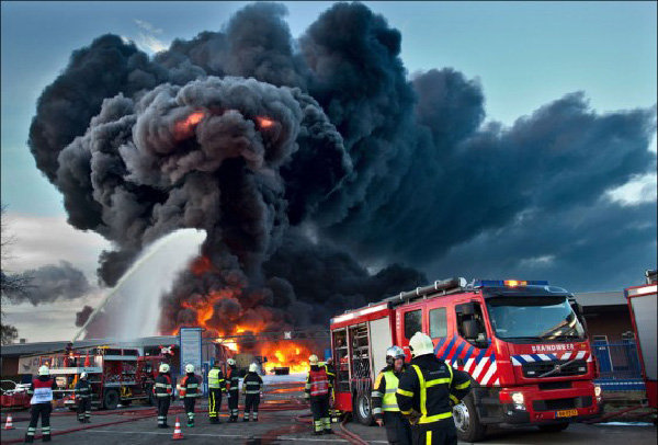 Humo negro con forma de elefante saliendo de un incendio en Holanda.