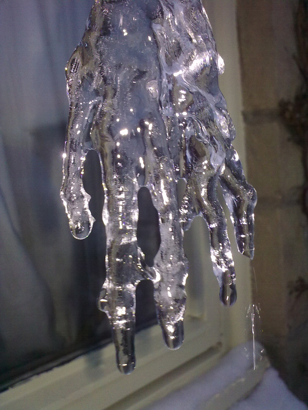 Carámbano de hielo con forma de una mano algo terrorífica, por supuesto, fotografiado en Islandia.