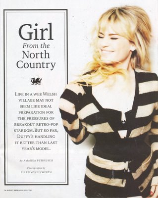 Aquí una aprición de Duffy para la revista Spin, en el pasado número de Agosto.