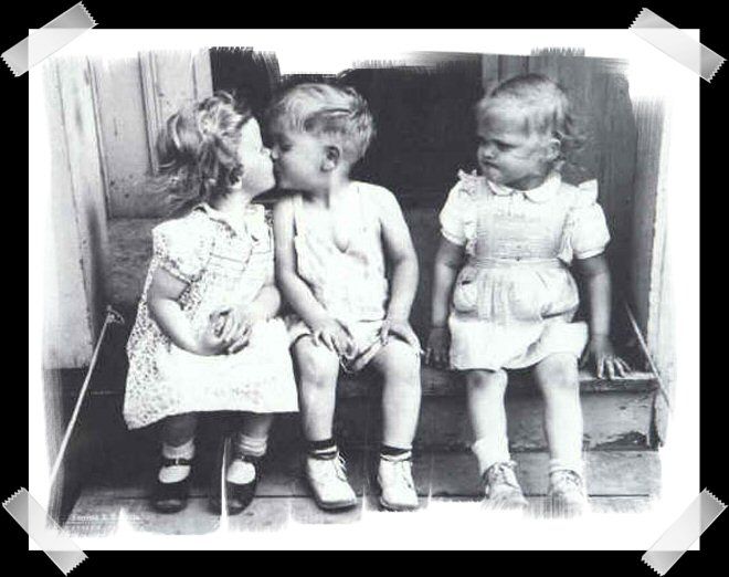 Qué cosa más bonita la de los niños besándose y la carita enfadada del otro. Y anda que la corbata tiene guasa.