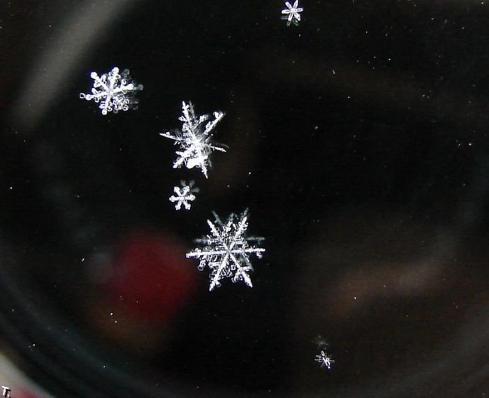 Mientras el vapor de agua se condensa en su superficie, las partículas de hielo comienzan a desarrollar patrones, que forman diferentes formas dependiendo de su temperatura.