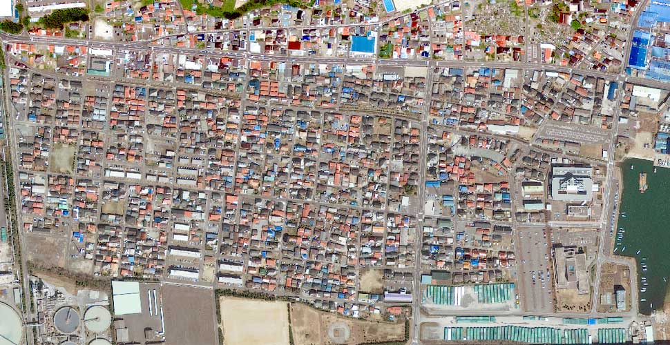 Ishinomaki: Imagen del antes (4 de abril de 2010) – Imagen del después (12 de marzo de 2011)