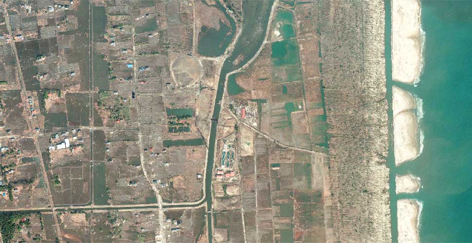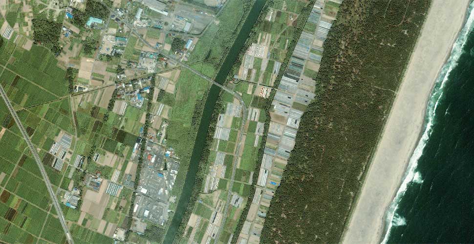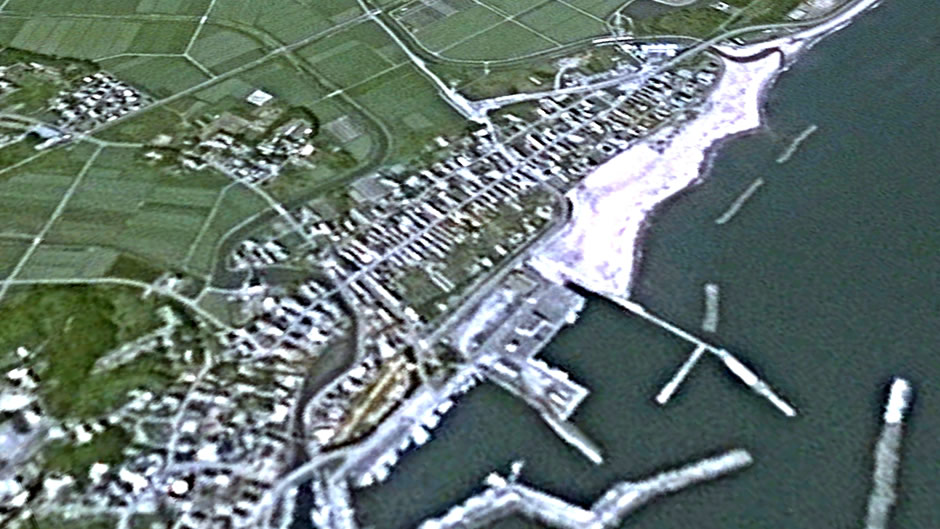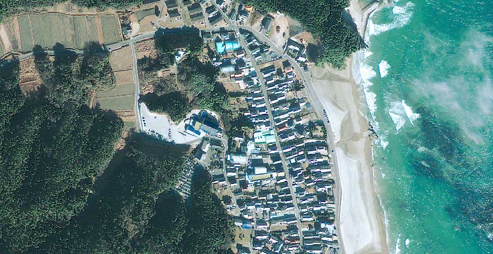 Yuriage, en Natori: Imagen del antes (4 de abril de 2010) – Imagen del después (12 de marzo de 2011)