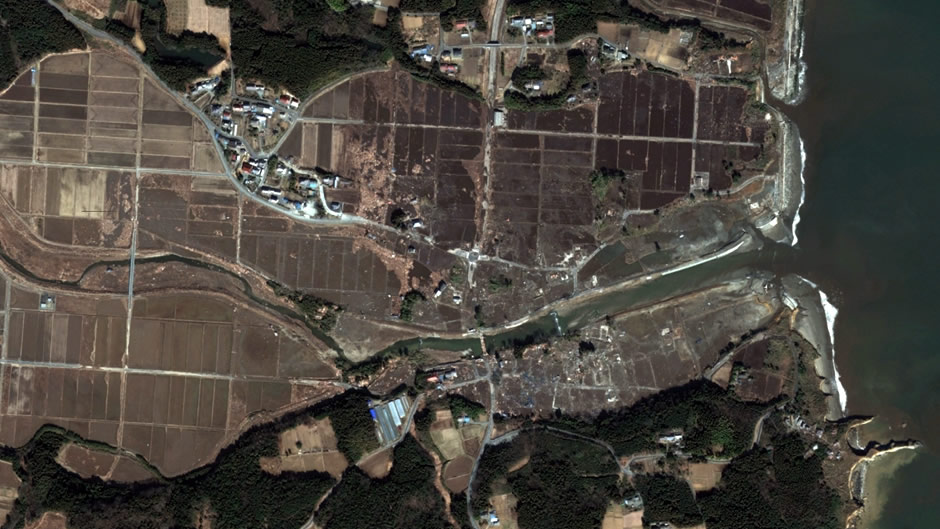 Tras el terremoto y tsunami sufridos en Japón el pasado 11 de marzo de, la faz de varias partes de su geografía ha cambiado totalmente, en parte debido al tsunami. En estas imágenes vistas desde un satélite, podemos comprobar la diferencia geográfica del terreno y ver la magnitud del desastre.