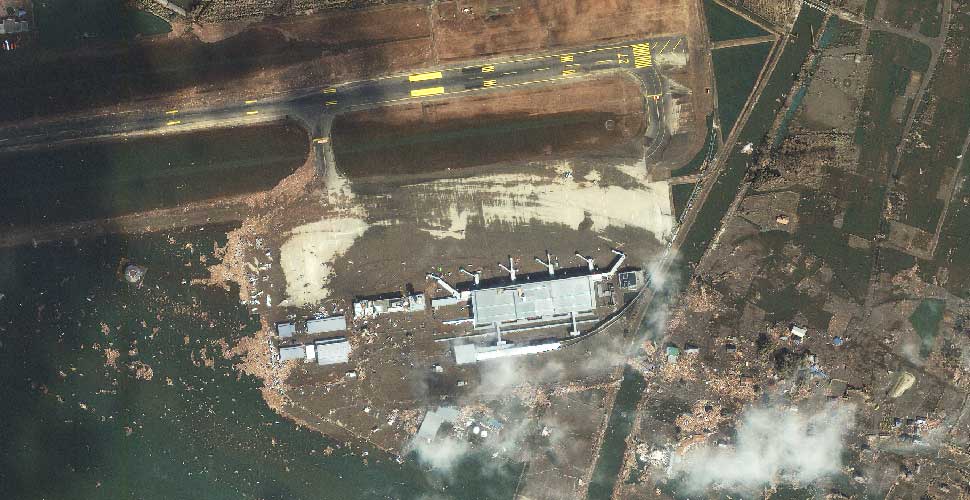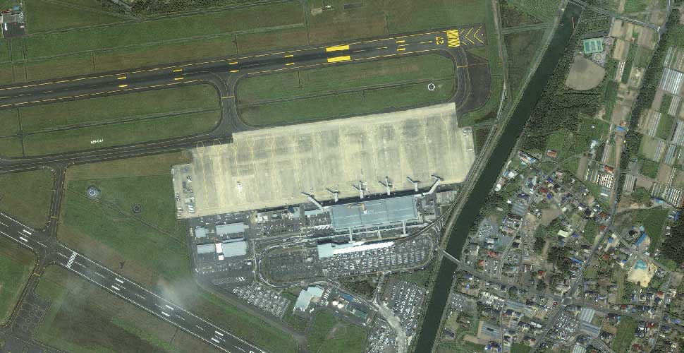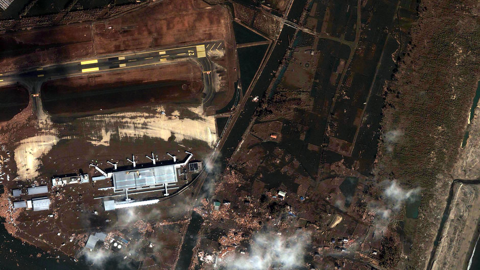 Aeropuerto de Sendai: Imagen del antes (3 de agosto de 2010) – Imagen del después (12 de marzo de 2011)