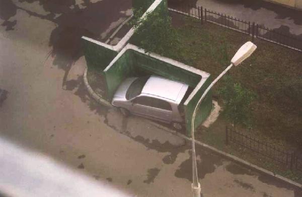Seguro que el coche estaba ahí aparcado, y llegó un gracioso y edificó el muro, Jajaja.