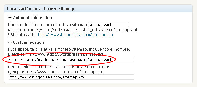 Así, si en el ejemplo es /home/.audrey/madonnar/blogodisea.com/sitemap.xml, debemos despreciar todo lo que siga al nombre del dominio y quedarnos con el principio.