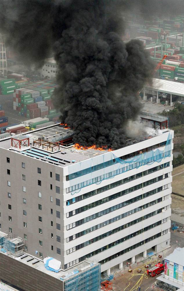 Un edificio de oficinas ardió en Tokio tras el terremoto.