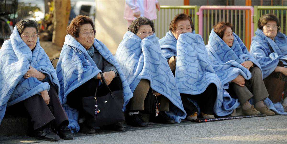 Evacuados consolándose en el Parque Central de Shinjuku, Tokio.
