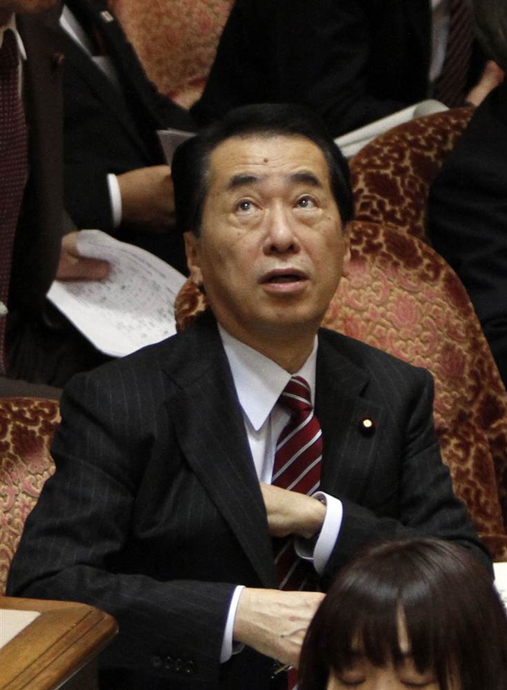 Reacción del primer ministro japonés Naoto Kan al sentir el terremoto mientras el comité se reunía en la cámara alta del parlamento de Tokio.