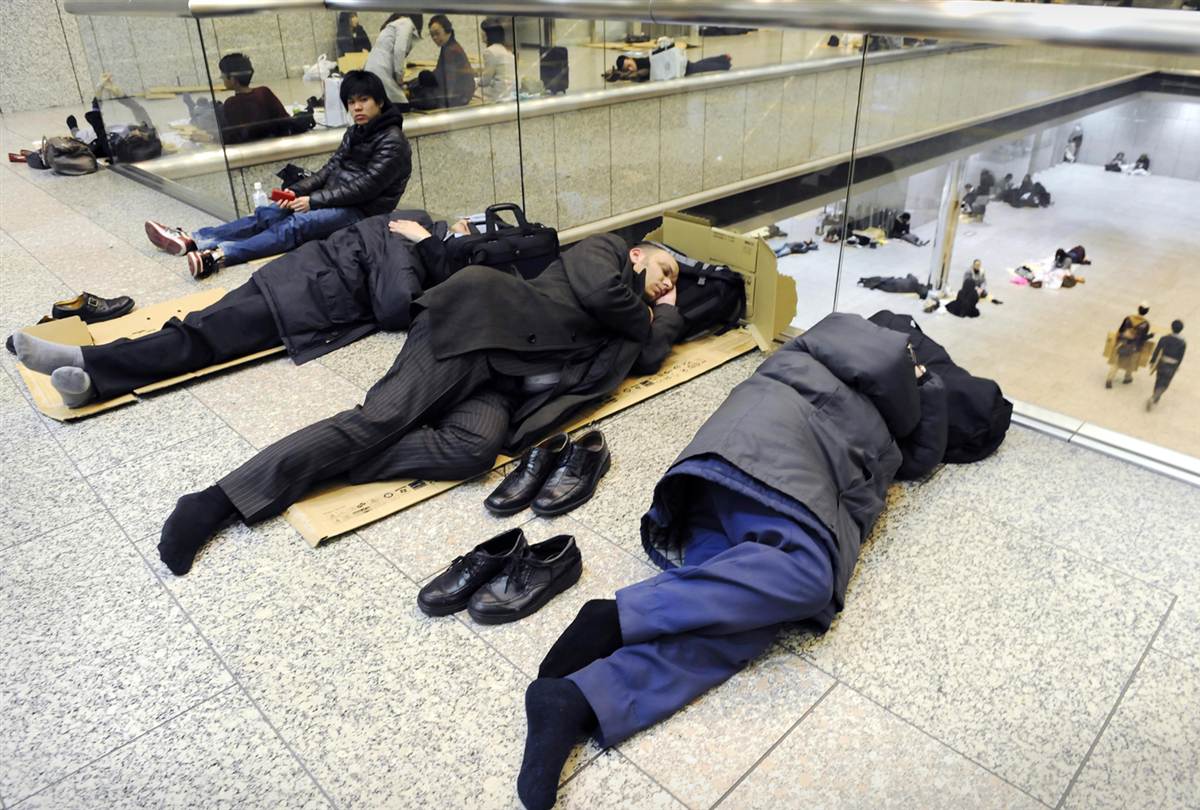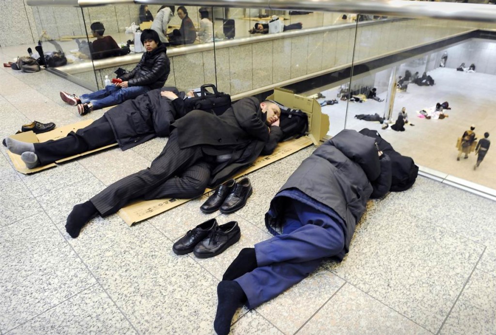 Varias personas durmieron el viernes del terremoto por la noche en el Tokio City Hall, debido a que los servicios de trenes y autobuses quedaron suspendidos.