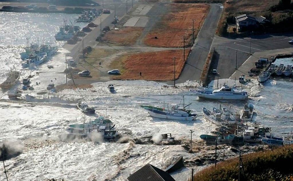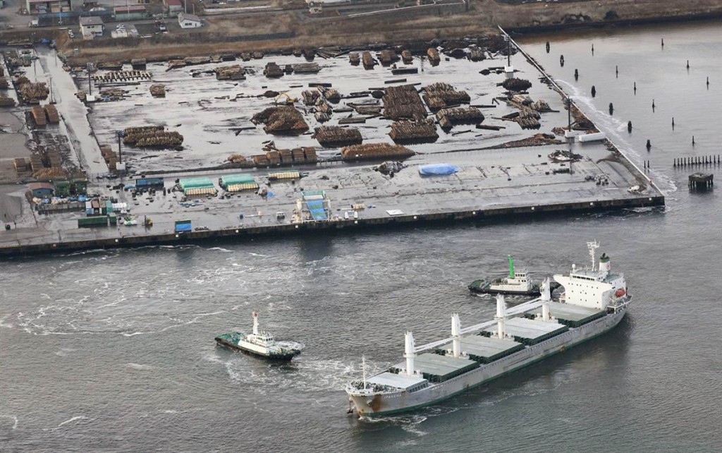 El puerto de Tomakomai, en Hokkaido, quedó sumergido tras el tsunami que siguió al fuerte seísmo del viernes 11 de marzo de 2011.