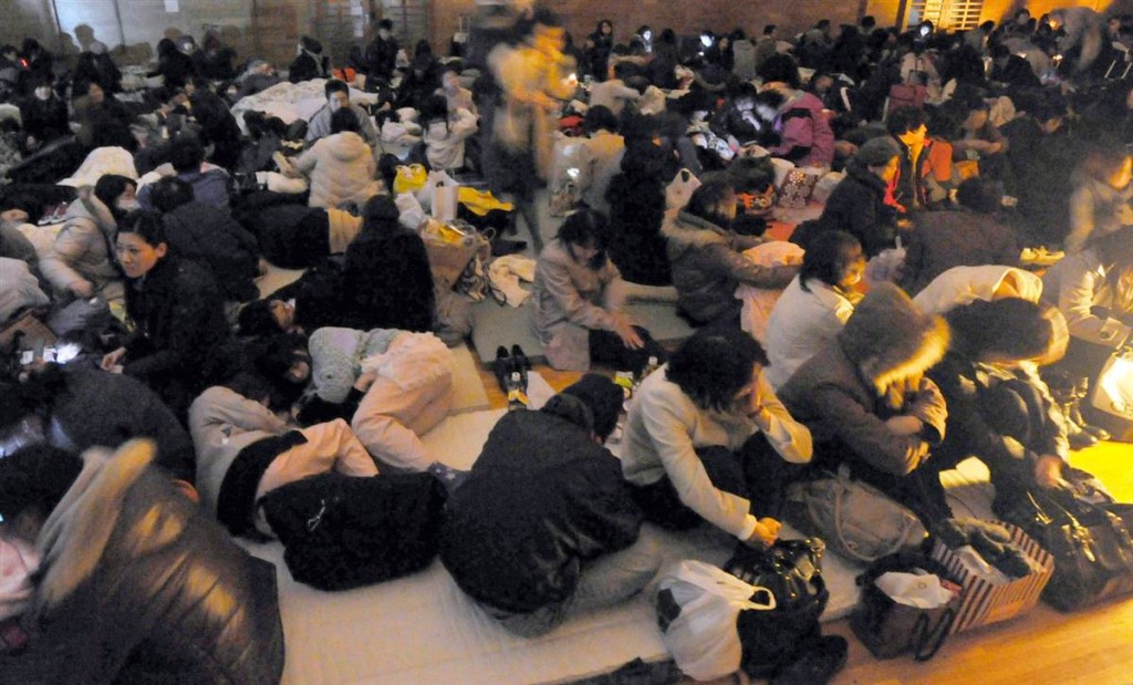 Personas evacuadas tomando cobijo tras el desastre en Sendai, prefectura de Miyagi.