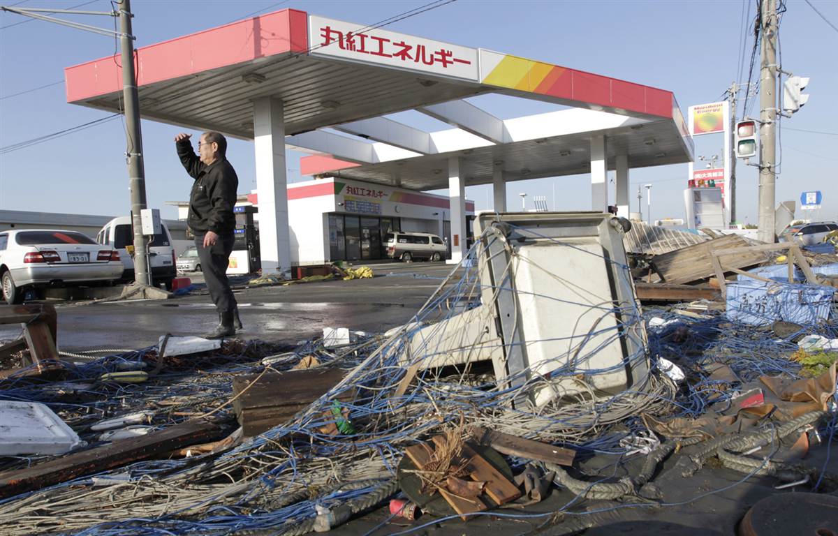 Un residente permanece frente a una gasolinera en Oarai, el 12 de marzo de 2011.