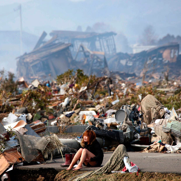 Mujer contemplando la devastación provocada por el tsunami en Ishinomaki, prefectura de Miyagi.